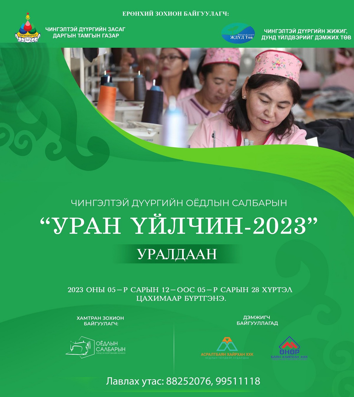 Чингэлтэй дүүрэг энэ жил Үйлдвэрлэлийг дэмжих жил болгон зарласан билээ. Үүний хүрээнд дүүргийн оёдлын салбарын үйлдвэр эрхлэгчдийн дунд “Уран үйлчин” уралдааныг зарлаж байна.