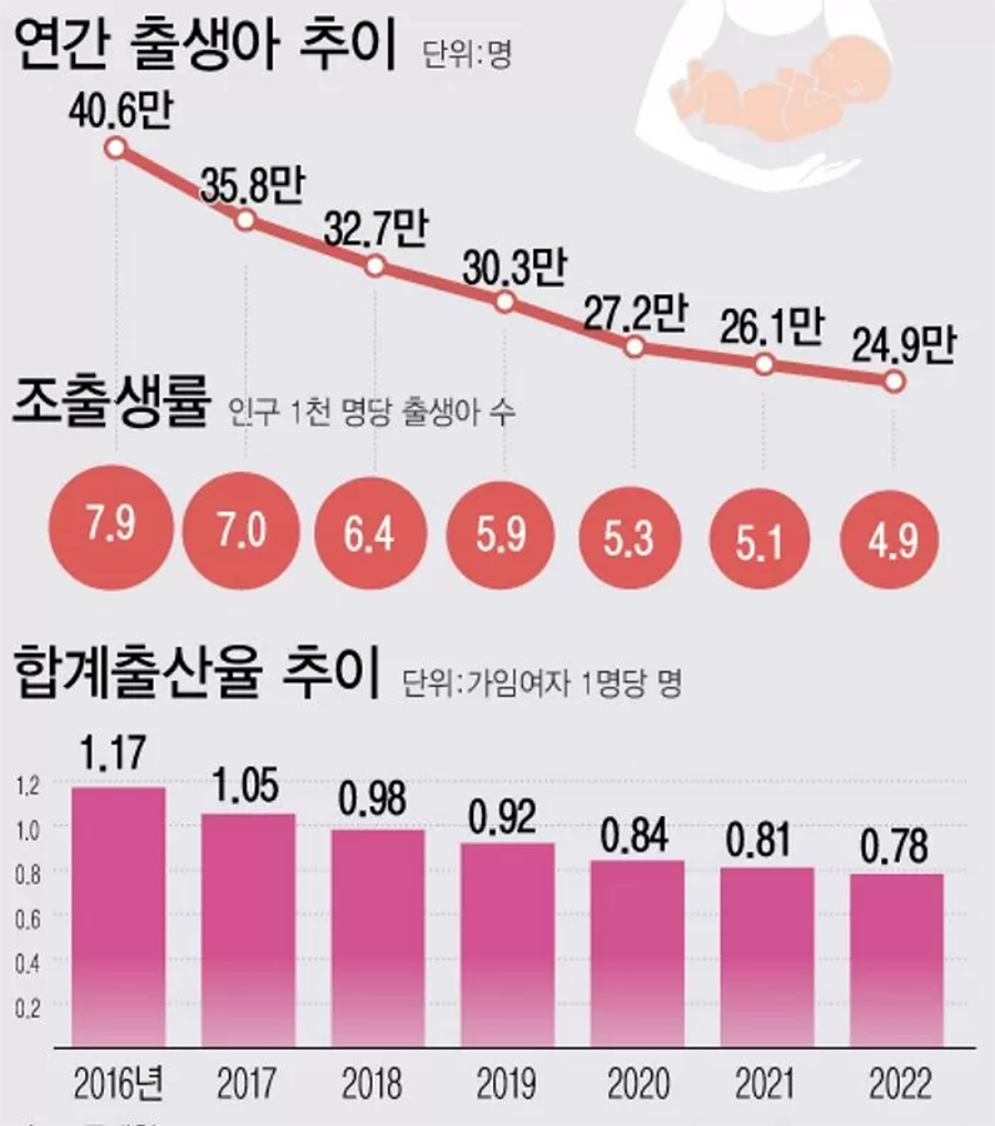 Өмнөд Солонгост нэг жилд амаржиж буй эмэгтэйчүүдийн тоо 250.000-аас доош буужээ. Энэ нь сүүлийн 10 жилийн өмнөхөөс 50 хувь буурсан үзүүлэлт аж.
