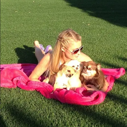 Пэрис Хилтон хайртай нохойнхоо зулзагануудтайгаа хамт байгаа зургийг нийтлэн "Өнөөдөр би нандин хайртай чиуауа үүдрийн Харажукутэйгээ салах ёс гүйцэтгэж, зүрх минь маш ихээр шархаллаа. Тэр сүүлийн амьсгалаа татах хүртлээ хайраар хүрээлэгдсэн урт удаан, сайхан амьдралаар амьдарсан. Яг одоо мэдэрч байгаа энэ их өвдөлтийг үгээр илэрхийлэхийн аргагүй. Тэр зүгээр нэг гэрийн тэжээвэр амьтан байгаагүй. Тэр бол миний гэр бүл минь. Амьдралын минь эргэлт бүхэнд надтай хамт байсан үнэнч найз минь байсан" хэмээн хайртай нохойдоо эмгэнэл илэрхийлжээ.