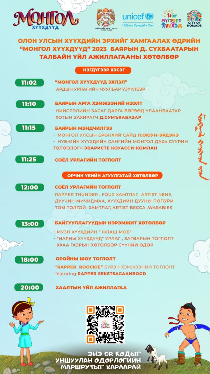 Соёлын төв өргөөнд “Хөгжлийн харандаа инновацын үзэсгэлэн 2023”, Монголын хүүхдийн ордон “Хүүхдийн ертөнц” фестиваль, Хүүхдийн урлан бүтээх төв “Бүтээлч хүүхэд” өдөрлөг, түүнчлэн дүүрэг бүр нутаг дэвсгэртээ арга хэмжээ зохион байгуулна.
