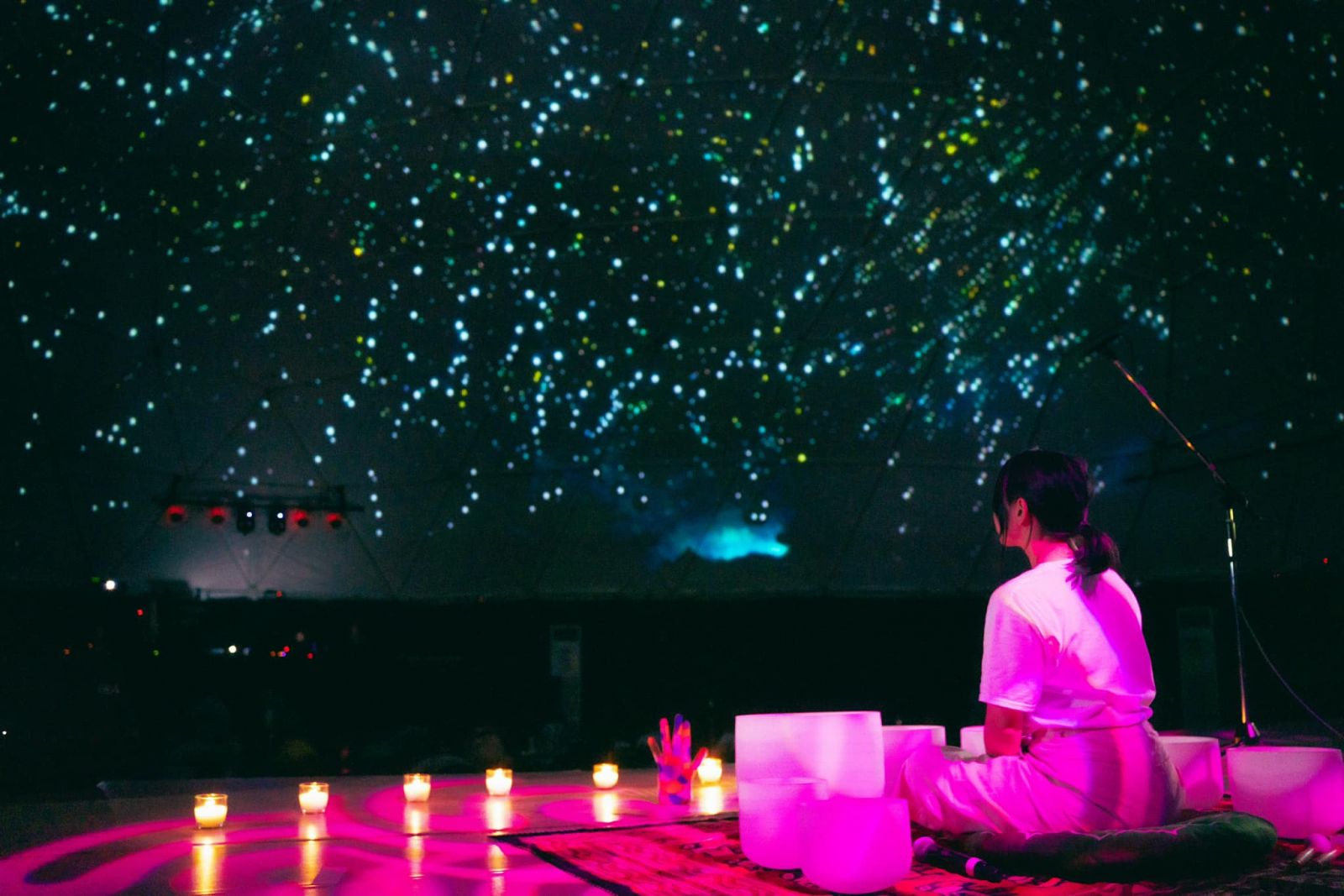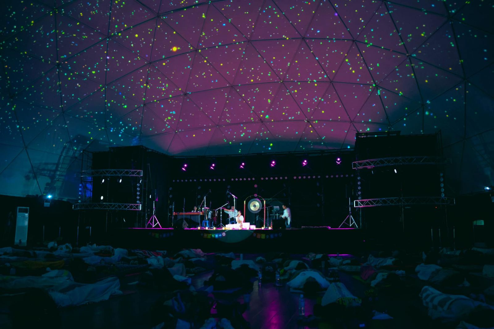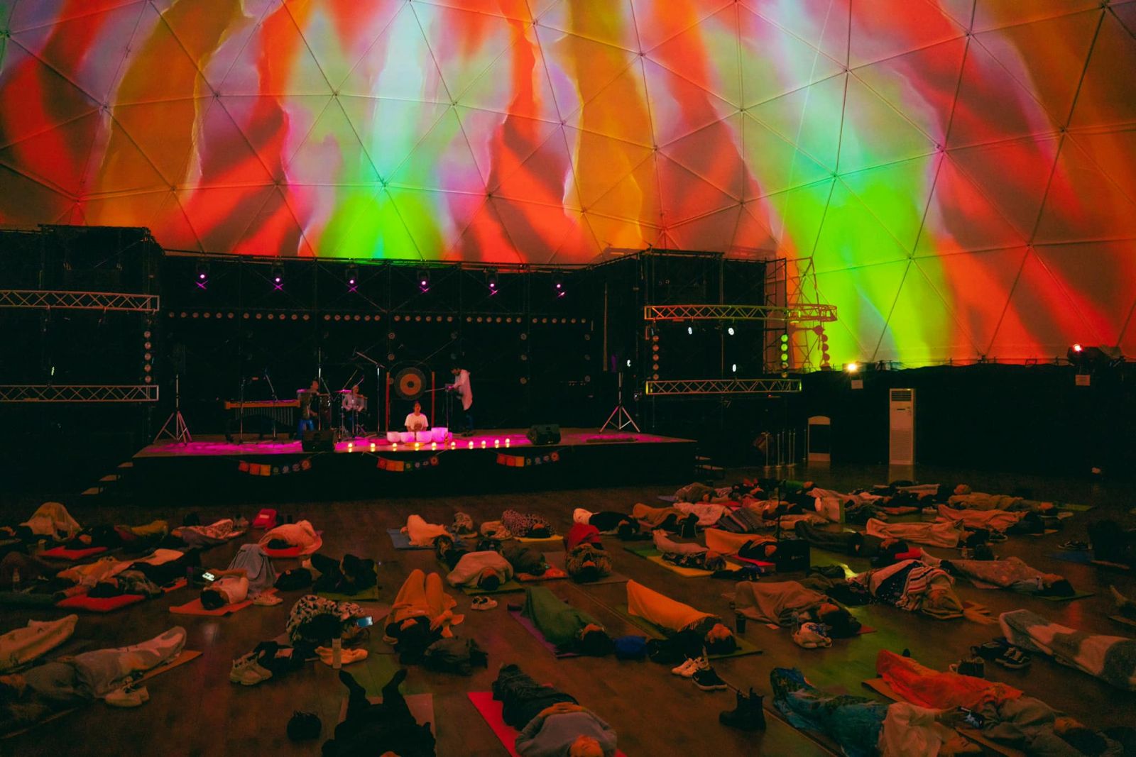 Хөгжимт бясалгалыг дуут аяга, хэл хуур, вибрафон, гонг, калимба, салхин хонх, цохивор хөгжим, хонх зэрэг хөгжмийн зэмсгүүдийг ашиглан хөгжимчдийн хамт саунд терапиcт Б.Тэлмүүн удирдана явуулжээ. Мөн уран бүтээлч Арюна Булутовагийн 360' медиа арт бүтээл болон уран бүтээлч Ц.Дэлгэрдалайгийн саунд арт бүтээлийг толилуулж, үзэгчдийн сэтгэлийг анагаалаа.