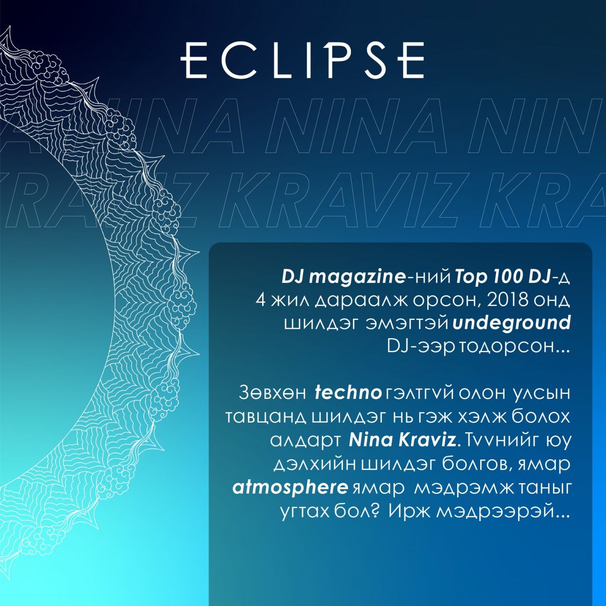 Техно болон хаус урсгалын хөгжмийг лазер гэрлийн шоутай хослуулахын сацуу уран зургийн дүрслэл бүхий "Visual art"-р баяжуулан өөр ертөнцөд аваачих тус фестивальд дэлхийн шилдэг техно Dj нарын нэг продюсер Nina Kraviz оролцох гэнэ.