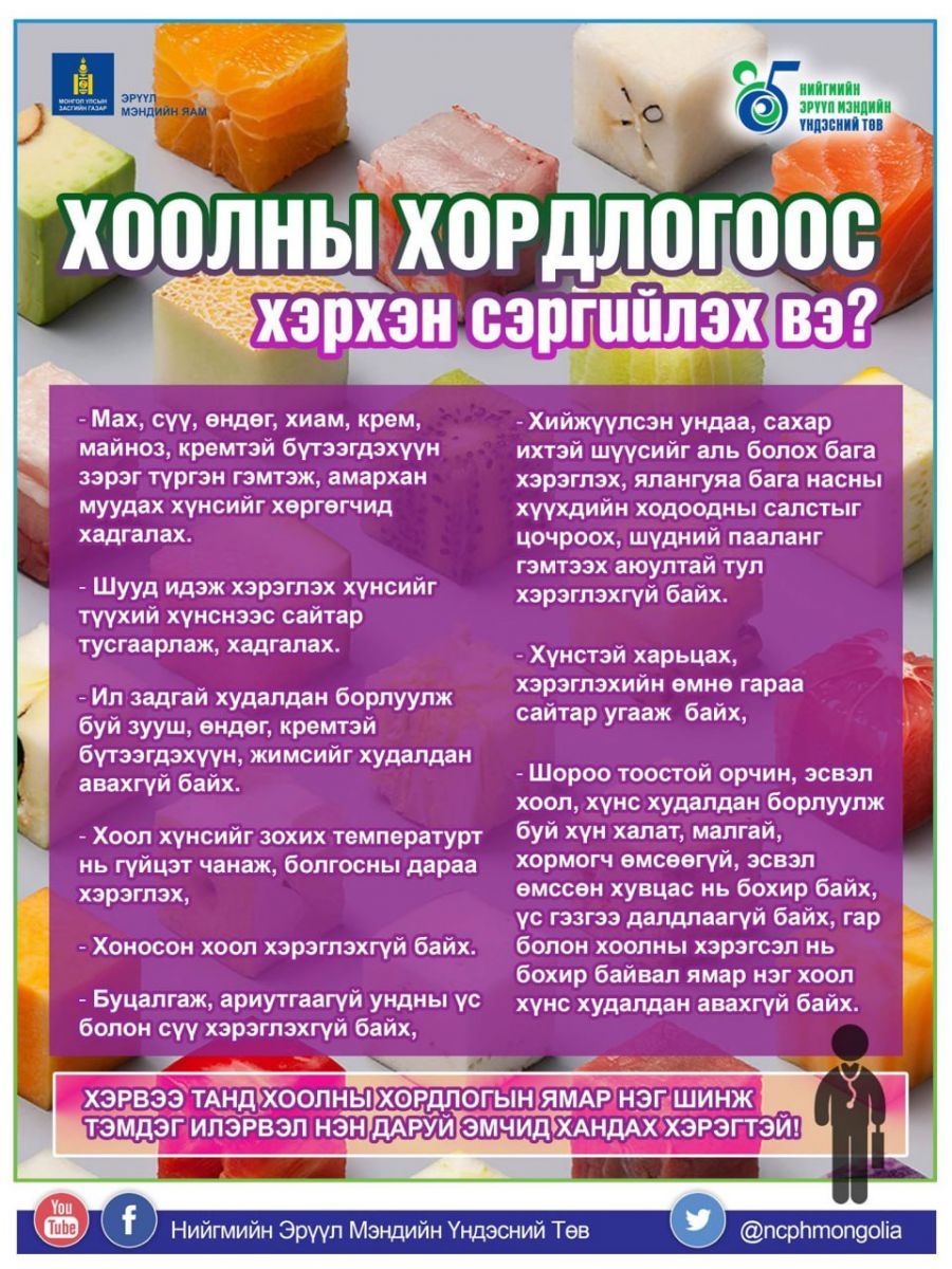 Хоол хордлогоос сэргийлэх дараах зөвлөмжийг таньд хүргэе.