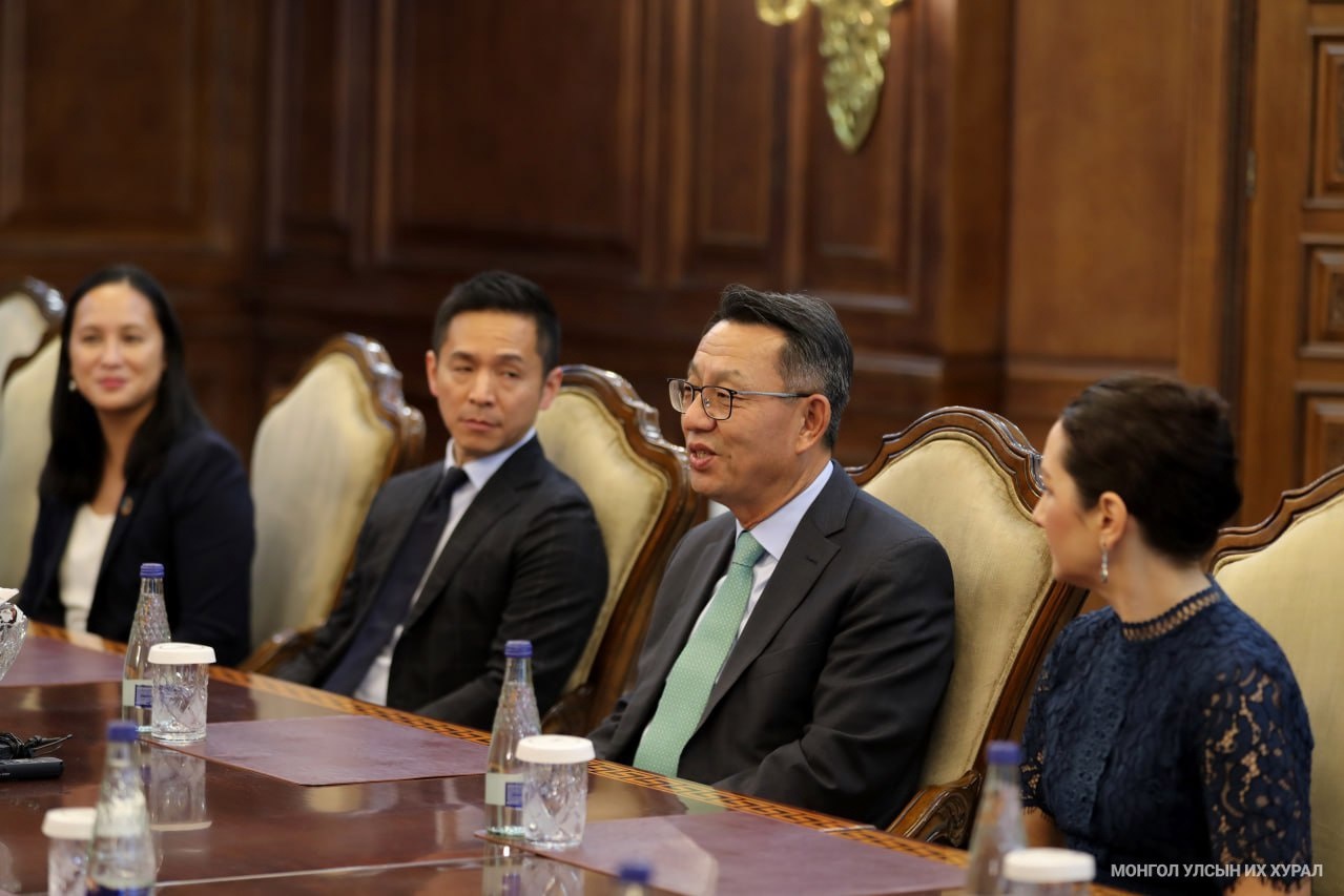 Монгол Улсын Их Хурлын дарга Г.Занданшатар “Алтай дамнасан тогтвортой байдлын яриа хэлэлцээ-жендэрийн эрх тэгш байдал ба тогтвортой хөгжил” чуулга уулзалтад оролцохоор хүрэлцэн ирсэн Стэнфордын их сургуулийн Ази, номхон далайн судалгааны төвийн захирал Жи Вүк Шин болон тус сургуулийн Боловсролын дэд профессор, “Боловсролын олон улсын харьцуулсан судлал”, “Олон улсын боловсролын бодлогын шинжилгээ” магистрын хөтөлбөрийн захирал Кристин Мин Вотипка, Ази, Номхон далайн судалгааны төвийн дэд захирал бөгөөд Японы хөтөлбөрийн захирал Киёотерү Цүцуй, Ази, Номхон далайн судалгааны төвийн хөтөлбөр, бодлого хариуцсан дэд захирал Шерилл Алипио, докторант Мари Вако нарыг  хүлээн авч уулзлаа.