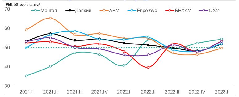 Эдийн засгийн ерөнхий хандлагыг харуулдаг Purchasing manager index - PMI буюу “Худалдан авалтын менежерийн индекс”-ийн 2023 оны нэгдүгээр улирлын дүнгээс харахад Монголын эдийн засаг тэлж байгаа талаар өмнө нь мэдээлсэн билээ.