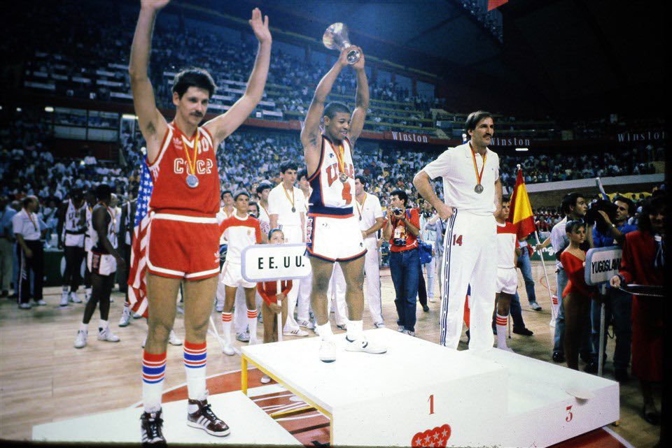 1986 онд болсон сагсан бөмбөгийн дэлхийн аварга шалгаруулах тэмцээн нь анх удаагаа баруун Европт зохион байгуулагдсан бөгөөд 1954 оноос хойш анх удаа АНУ-ын шигшээ баг түрүүлсэн билээ. Хоёрдугаар байранд ЗХУ-ын шигшээ баг, Югославын шигшээ баг хүрэл медалийн болзол хангасан юм.
