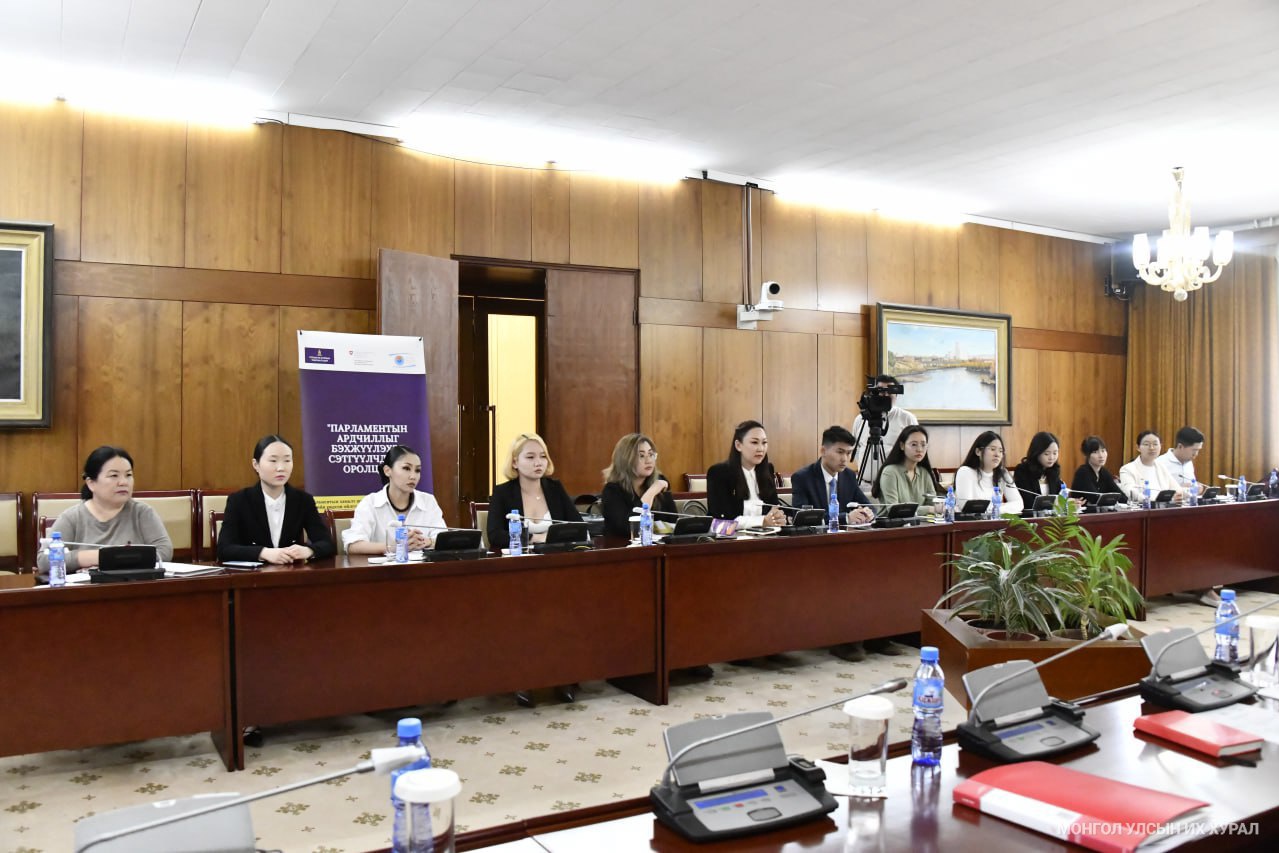 Улсын Их Хурлын Тамгын газраас Швейцарийн хөгжлийн агентлагийн дэмжлэгтэйгээр хэрэгжүүлж байгаа “Монгол Улсад парламентын ардчиллыг бэхжүүлэх нь” төслийн хүрээнд “Бодлогод залуусын хяналт” Төрийн бус байгууллагатай хамтран явуулж буй “Парламентын ардчиллыг бэхжүүлэхэд сэтгүүлчдийн оролцоо” сургалт зохион байгуулж байна. Энэ сарын эхнээс эхэлсэн тус сургалтад залуу сэтгүүлчдийн зэрэгцээ иргэний нийгмийн байгууллагын төлөөлөл оролцож байна. Танхимаар явуулсан хоёр өдрийн үндсэн лекцийн зэрэгцээ зочны лекцүүд, Улсын Их Хурлын үйл ажиллагаатай танилцах практик аяллаар үргэлжилж буй сургалтын өнөөдрийн (2023.06.16) хөтөлбөрт Улсын Их Хурлын гишүүн, Монгол Улсын сайд Ж.Сүхбаатар, Улсын Их Хурлын Ерөнхий нарийн бичгийн дарга, доктор Л.Өлзийсайхан нар уригдаж, Улсын Их Хурлын хяналт шалгалтын тухай хуулийг боловсруулан баталж, хэрэгжүүлсэн туршлага болон Парламентын боловсрол хөтөлбөрийн тухай танилцуулга хийлээ.