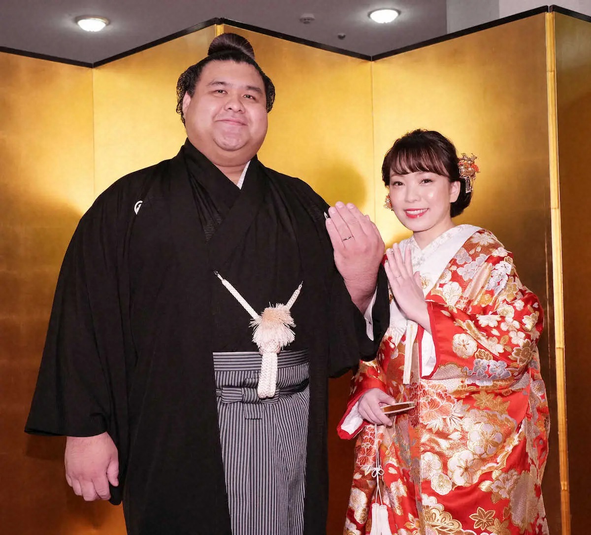 Мэргэжлийн сүмогийн озэки асан Такаясү, энка дуучин Кономи Мори нар Токио хотын нэгэн зочид буудалд хуримын ёслолоо хийж, скозүна асан Кисэносато тэргүүтэй 720 зочин хүрэлцэн иржээ. Хосууд энэ сарын эхээр төрсөн нутаг болох Ибараки, Хоккайдо мужид хамаатан садан, нутгийн олонтойгоо хоёр удаа ёслол хийсэн юм.