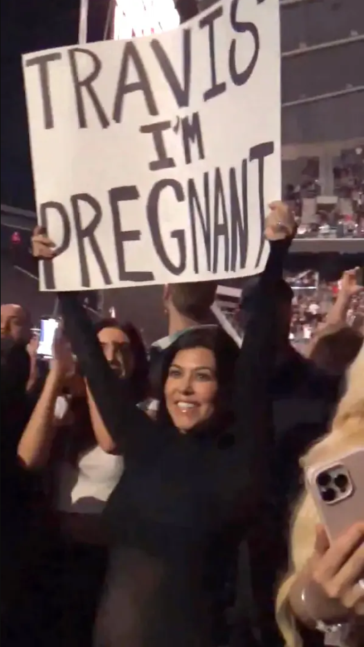 Реалити шоуны од Кортни Кардашъян хөл хүнд болсон тухайгаа тун ч сонирхолтой байдлаар нөхөртөө болон олон нийтэд мэдэгджээ. Түүний нөхөр Трэвис Баркер тайзнаа үзүүлбэр үзүүлж байх үед Кортни Кардашъян "Трэвис би жирэмсэн" хэмээх үгтэй самбар барин үзэгчдийн дунд зогсож байсан аж.