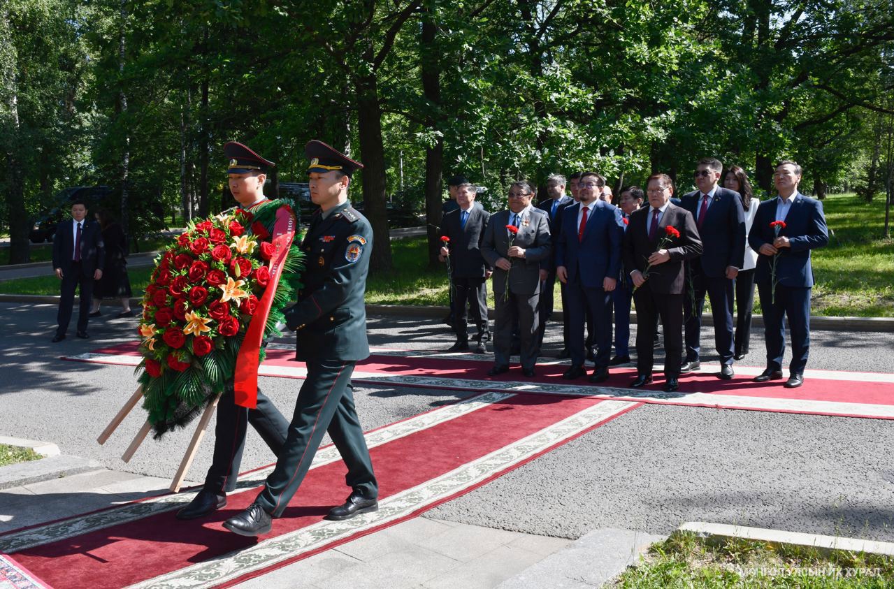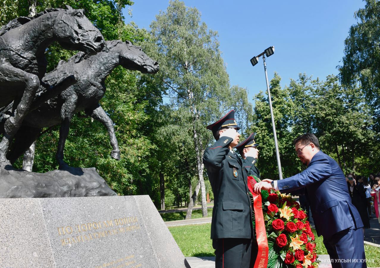 “Ялалтад тэмүүлсэн морьд” хүрэл хөшөөнд цэцэг өргөж, хүндэтгэл үзүүлэх арга хэмжээнд Монгол Улсаас ОХУ-д суугаа Онц бөгөөд Бүрэн Эрхт Элчин сайд Ө.Энхтүвшин, Улсын Их Хурлын гишүүн, Улсын Их Хурлын Аюулгүй байдал, гадаад бодлогын байнгын хорооны дарга, Улсын Их Хурал дахь Монгол-Оросын парламентын бүлгийн дэд дарга Б.Энх-Амгалан, Улсын Их Хурлын гишүүн, Сангийн сайд, Улсын Их Хурал дахь Монгол-Оросын парламентын бүлгийн гишүүн Б.Жавхлан, Улсын Их Хурлын гишүүн, Зам, тээврийн хөгжлийн сайд С.Бямбацогт, Улсын Их Хурлын гишүүн С.Ганбаатар, Монгол Улс, ОХУ-ын баатар, Монгол Улсын сансрын нисгэгч Ж.Гүррагчаа болон албаны бусад хүмүүс оролцлоо хэмээн Улсын Их Хурлын Хэвлэл мэдээлэл, олон нийттэй харилцах хэлтсээс мэдээллээ.