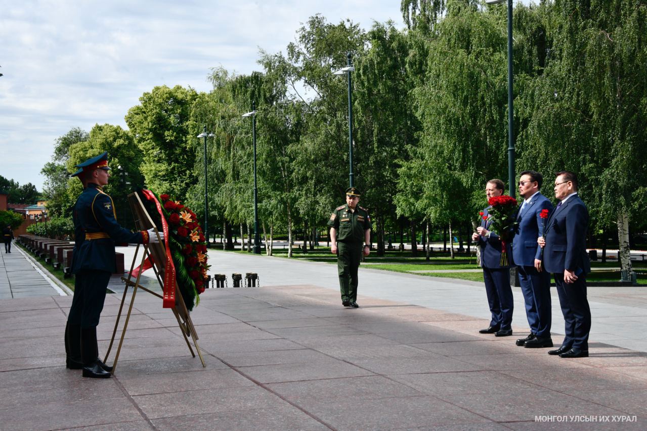 Оросын Холбооны Улсад албан ёсны айлчлал хийж байгаа Монгол Улсын Их Хурлын дарга Г.Занданшатар тэргүүтэй төлөөлөгчид өнөөдөр (2023.06.20) Александрын цэцэрлэгт хүрээлэн дэх “Нэр нь үл мэдэгдэх дайчдын” хөшөөнд цэцэг өргөсний дараа ОХУ-ын Холбооны Хурлын Төрийн Думын дарга В.В.Володинтой албан ёсны хэлэлцээ хийлээ.