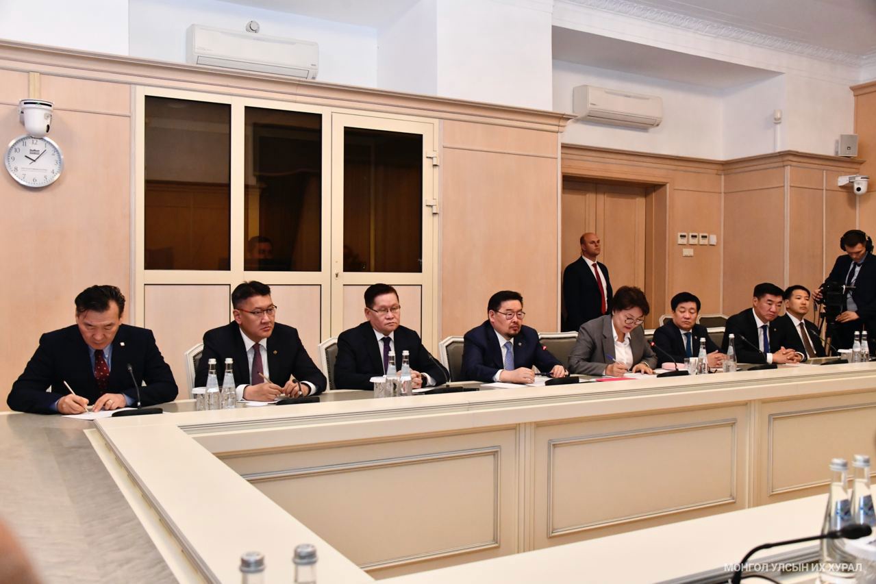Уулзалт, хэлэлцээнд Монгол Улсаас ОХУ-д суугаа Онц бөгөөд Бүрэн эрхт Элчин сайд Ө.Энхтүвшин, Улсын Их Хурлын гишүүн, Аюулгүй байдал, гадаад бодлогын байнгын хорооны дарга Б.Энх-Амгалан, Улсын Их Хурлын гишүүн, Сангийн сайд Б.Жавхлан, Улсын Их Хурлын гишүүн, Зам, тээврийн хөгжлийн сайд С.Бямбацогт, Улсын Их Хурлын гишүүн С.Ганбаатар, Гадаад харилцааны дэд сайд Г.Амартүвшин, ОХУ-ын Төрийн Думын орлогч дарга А.В.Гордеев, Төрийн Думын Олон улсын асуудал хариуцсан хорооны дарга Л.Э.Слуцкий, Тээвэр, тээврийн дэд бүтцийн хөгжлийн хорооны дарга Е.С.Москвичев, Аюулгүй байдал, авилгатай тэмцэх хорооны дарга В.И.Пискарев, Аялал жуулчлал, жуулчлалын дэд бүтцийн хорооны дарга С.А.Тарбаев, Өмч, газар, өмчийн харилцааны хорооны нэгдүгээр орлогч дарга С.Ю.Тен, Эдийн засгийн бодлогын хорооны нэгдүгээр орлогч дарга Н.В.Школкина, Төсөв, татварын хорооны нэгдүгээр орлогч дарга М.В.Щапов нар оролцлоо хэмээн Улсын Их Хурлын Хэвлэл мэдээлэл, олон нийттэй харилцах газраас мэдээллээ.