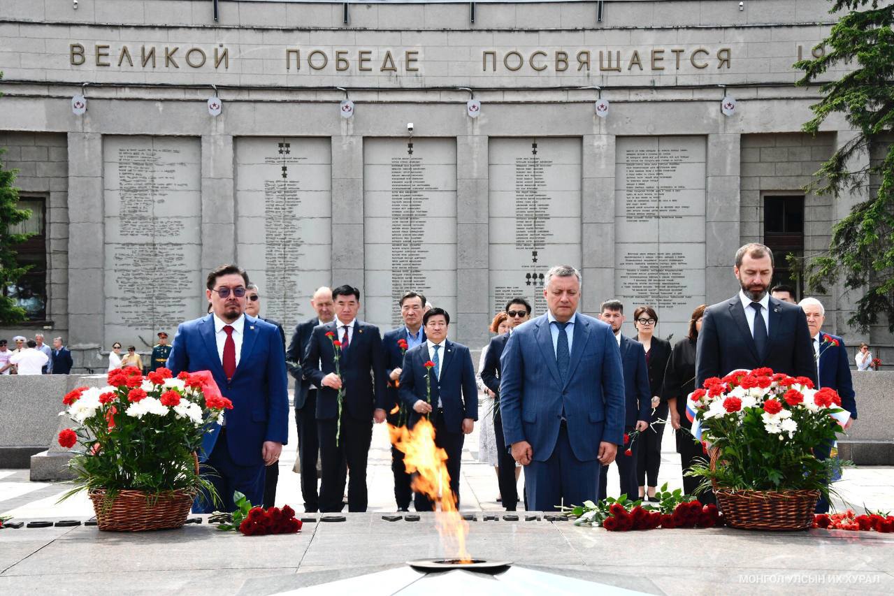Уулзалтын дараа УИХ-ын дарга Г.Занданшатар тэргүүтэй төлөөлөгчид Эрхүү муж дахь аугаа эх орны дайны ахмад дайчдын дурсгалыг хүндэтгэн билэгдсэн “Мөнхийн гал”-д цэцэг өргөж хүндэтгэл үзүүллээ.