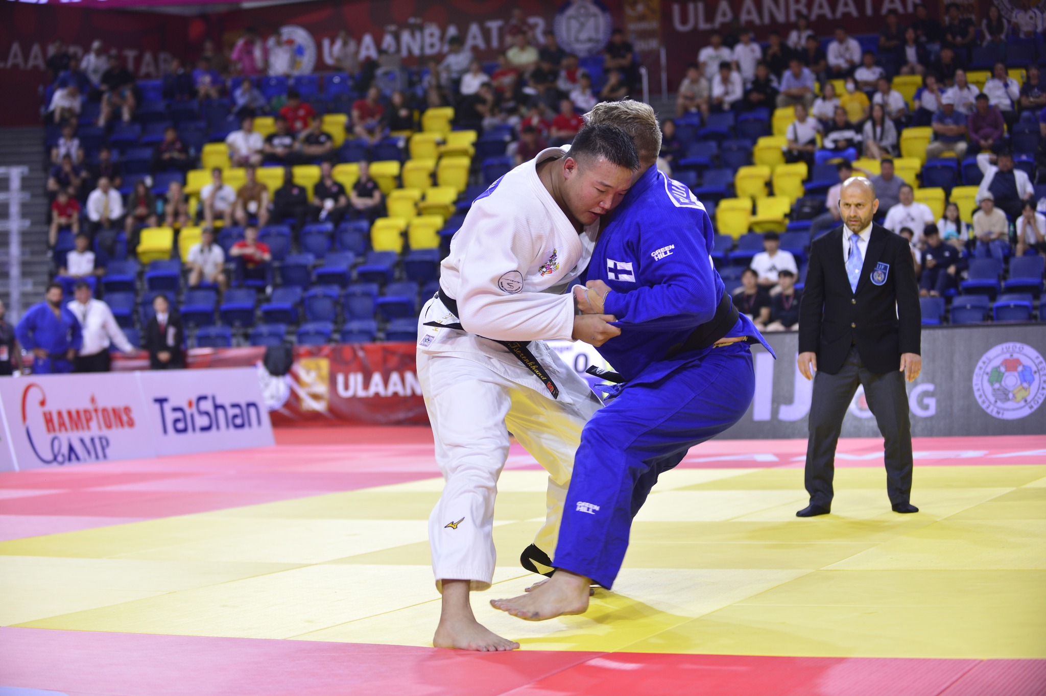 Тэрбээр тэмцээний нийт тамирчдыг тэргүүлэн барилдаж, А хэсэгт эхний тойрогтооо гоц мөргөөд хоёрын даваанд IJF-ийн нэр дор барилдаж буй Яхор Кукаренкаг ялаад 1/4 шигшээд Германы Лоссени Конед вазари үнэлгээгээр ялагдсан.