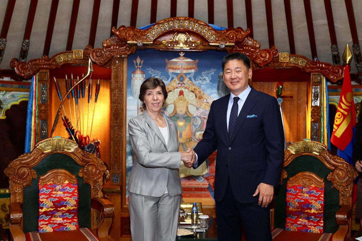 Монгол Улсын Ерөнхийлөгч Ухнаагийн Хүрэлсүхэд Бүгд Найрамдах Франц Улсын Гадаад болон Европын хэргийн сайд К.Колонна бараалхав. Гадаад хэргийн эмэгтэй сайд нарын уулзалтыг хамтран зохион байгуулж, тус уулзалтад оролцохоор хүрэлцэн ирсэнд Ерөнхийлөгч талархал илэрхийлэв.