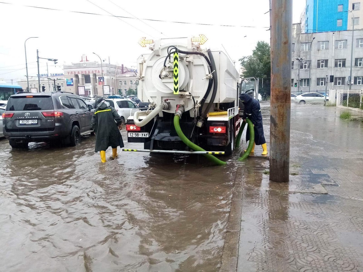 Ойрын өдрүүдэд нийслэлд бороо үргэлжлэн орж буй тул зам, талбайд ус тогтсон дуудлага, мэдээллийн дагуу Геодези, усны барилга, байгууламжийн газрын албан хаагчид арга хэмжээ авч ажиллаж байна. Тодруулбал, Баянгол дүүргийн 3 дугаар хороо буюу Төмөр замын вокзалын тойрог орчмын авто машин зорчих хэсэг, 20 дугаар хорооны нутаг дэвсгэр Саппоро орчмын байршилд очиж зам, талбайд тогтсон нийт 120 тонн усыг соруулаад буй.