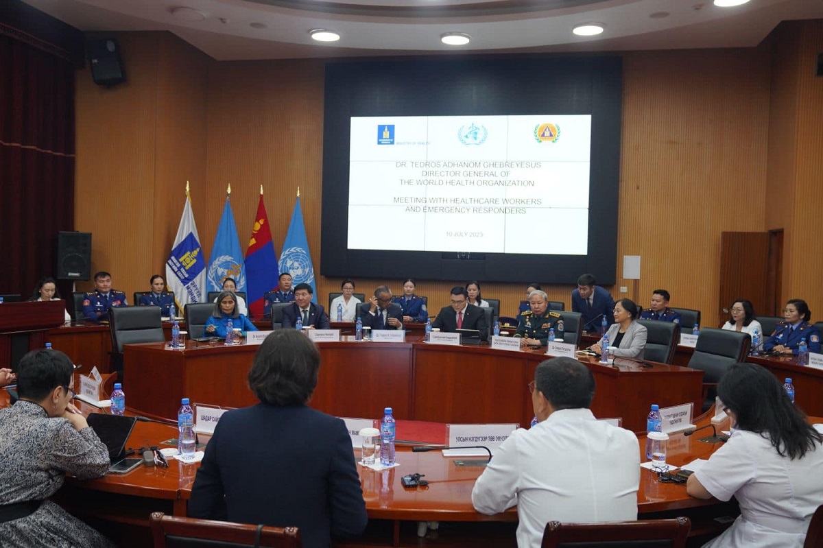 Дэлхийн эрүүл мэндийн байгууллагын ерөнхий захирал Тедрос А.Гебрейесус манай улсад хүрэлцэн ирсэнтэй холбогдуулан Монгол Улсын Шадар сайд С.Амарсайхан хүлээн авч уулзлаа. Уулзалтад ДЭМБ-ын Монгол дахь суурин төлөөлөгч Сокорро Эскалантэ, Эрүүл мэндийн сайд С.Чинзориг, ОБЕГ-ын дарга Г.Ариунбуян болон эрүүл мэнд, онцгой байдлын салбарын 130 гаруй төлөөлөл оролцлоо.