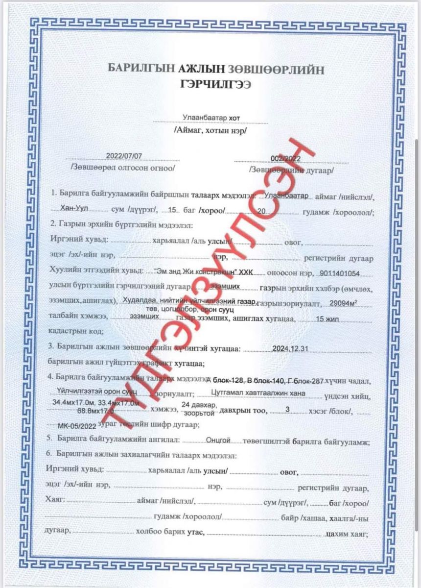 Тэрбээр "Авлига хороолол гэж нэрлэгдээд буй "Эм энд Жи констракшн" ХХК-ийн барилгын ажлын зөвшөөрлийг түтгэлзүүлэх шийдвэрийг яамнаас гаргаж, барилгын ажлыг зогсоохоор болсон" гэж олон нийтийн сүлжээнд нийтэлсэн юм.