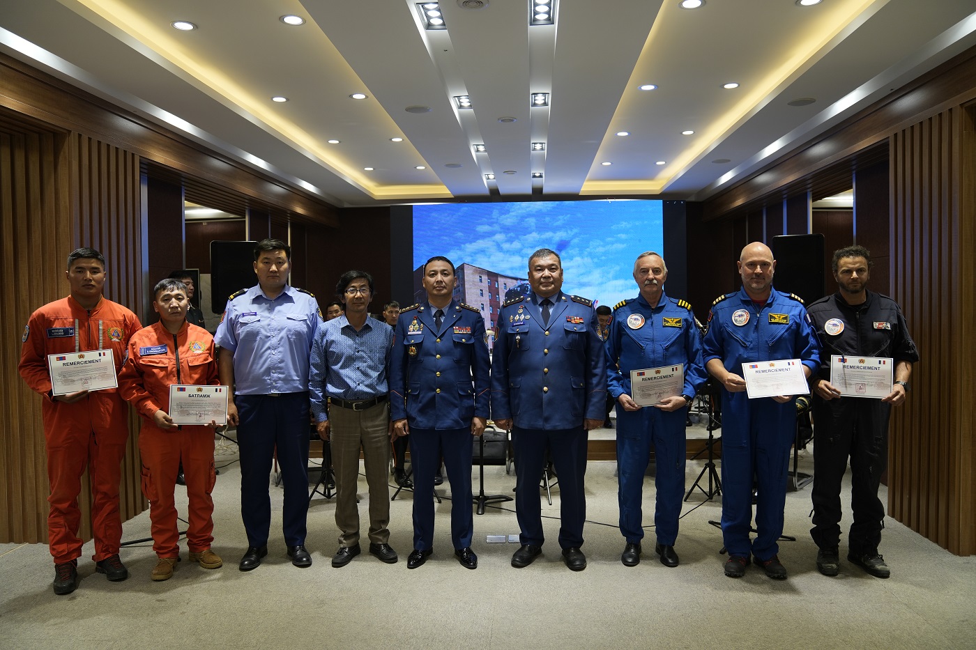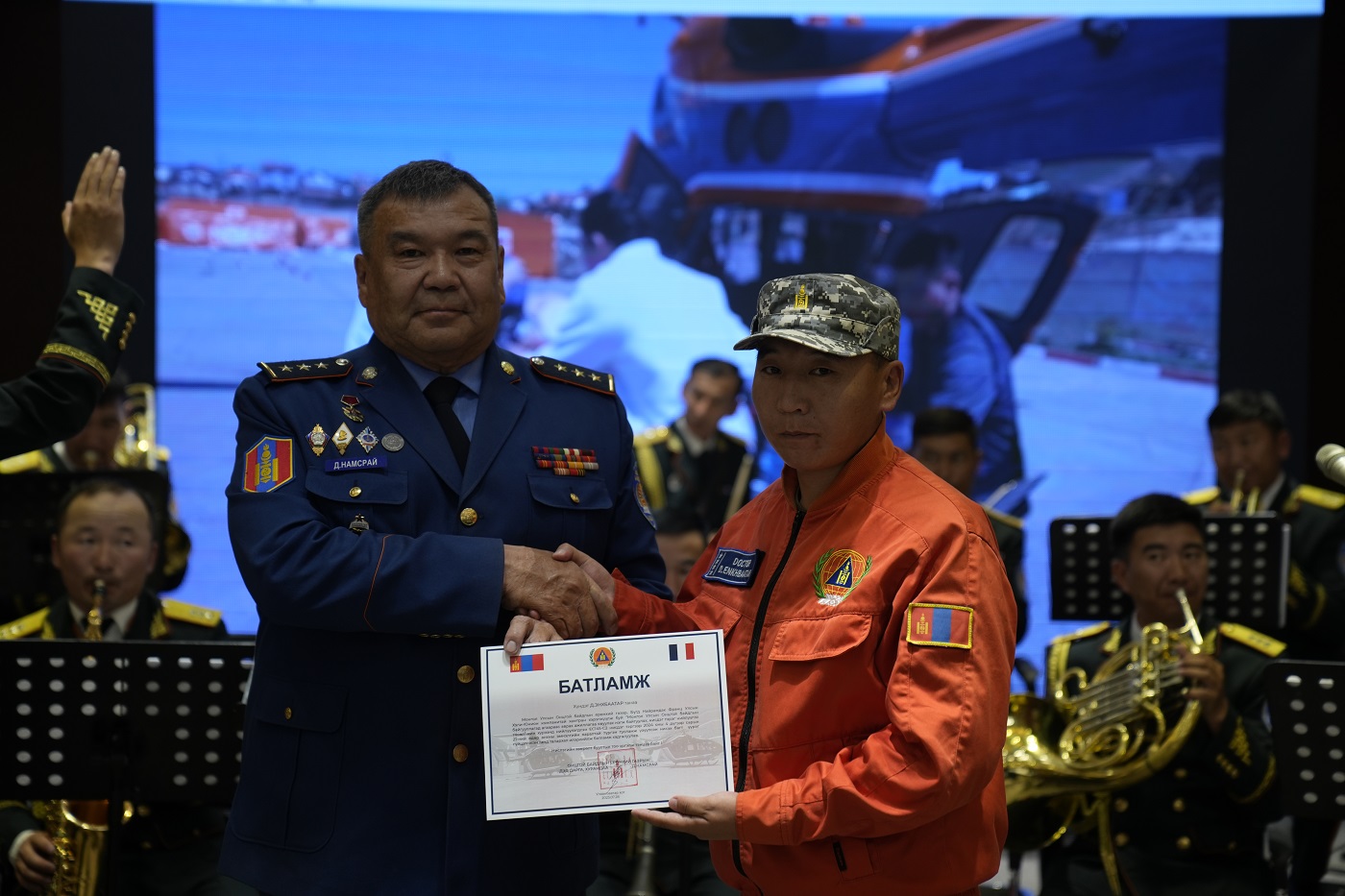 Тус анхны нислэгт оролцсон БНСУ-ын Хэли-Юнион компанийн болон Агаараас эрэн хайх, аврах 111 дүгээр ангийн алба хаагчдад талархал илэрхийлж, “Батламж” гардууллаа.