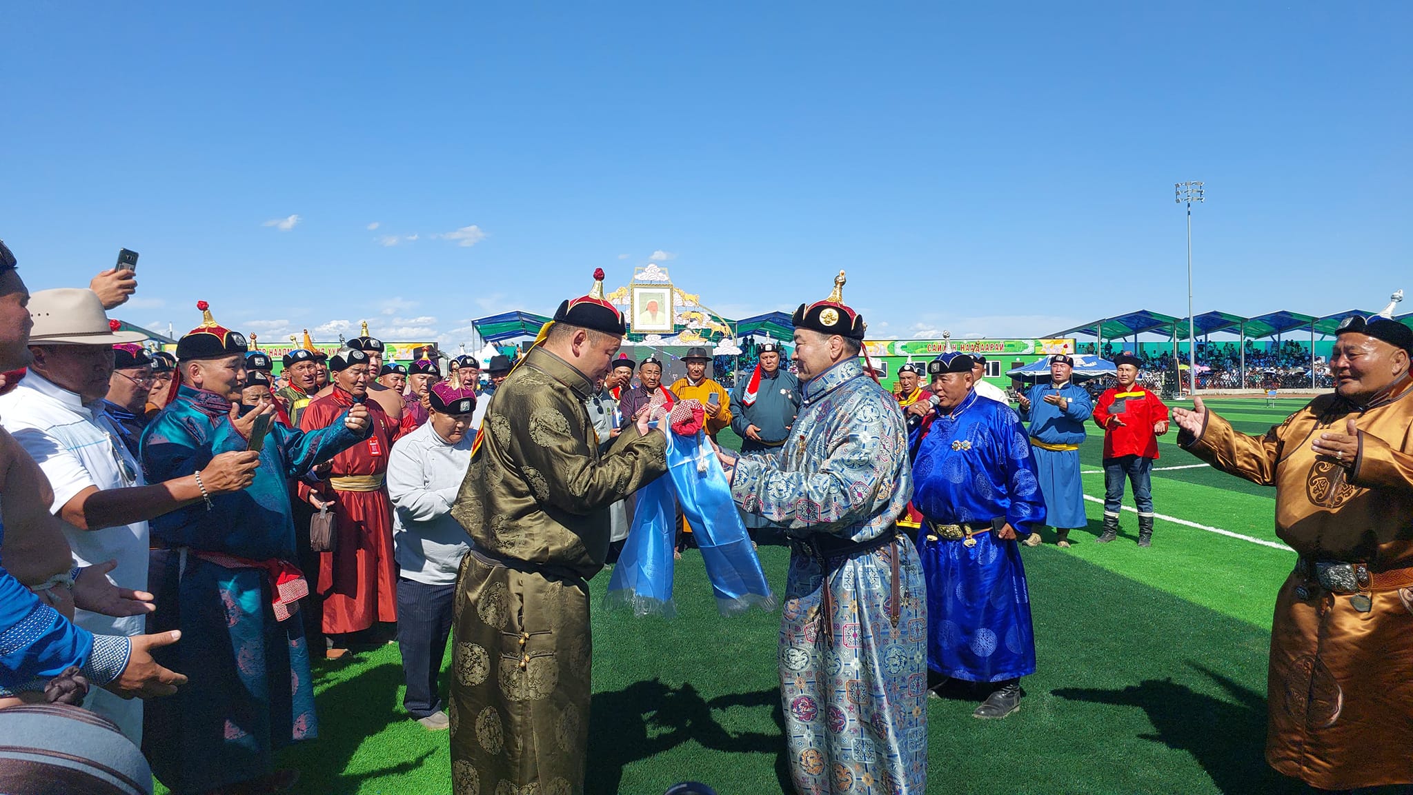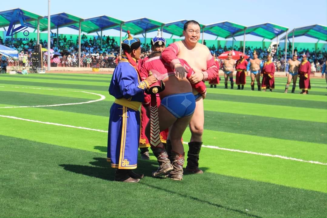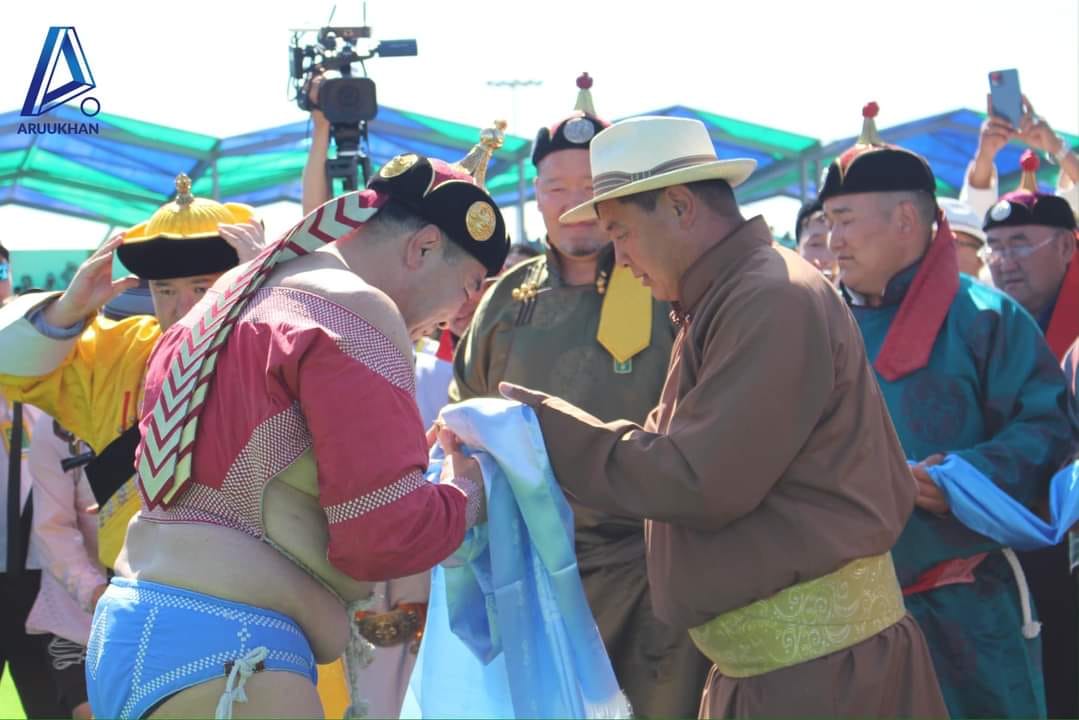 Тэгвэл Дархан аварга Б.Бат-Эрдэнэ өнөөдөр аймгийнхаа яруу түүхт 100 жилийн ойн наадмаар “Хан Хэнтий аварга” дэвжээнийхээ нийт хамт олонд зодгоо тайлах ёслолыг хүндэтгэлтэйгээр үйлдлээ.