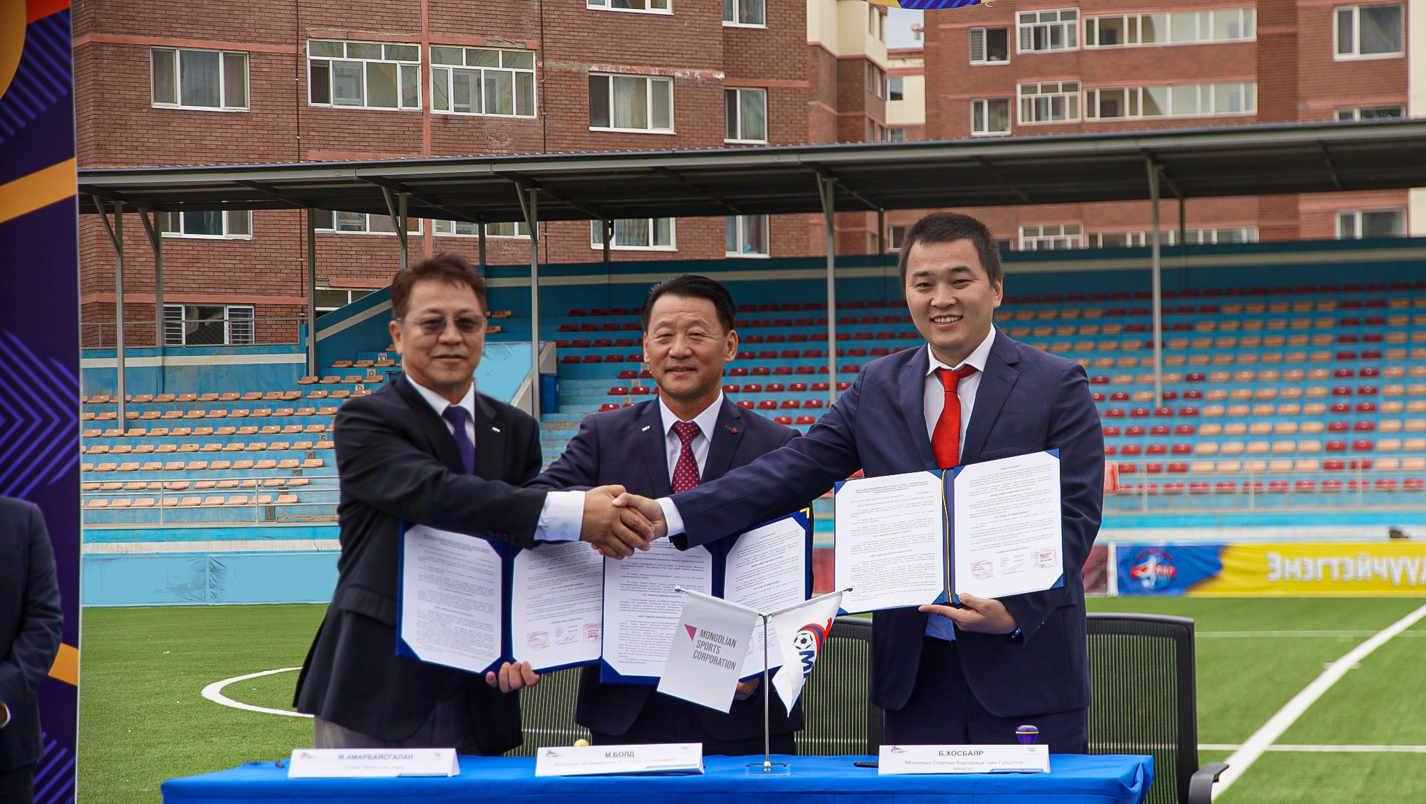 Үүний хүрээнд МХБХ-ны ерөнхийлөгч М.Болд Лигийн зөвлөлийн дарга М.Амарбаясгалан болон Монголын Спортын Корпорацийн гүйцэтгэх захирал Б.Хосбаяр нартай лигүүдийг мэргэжлийн түвшинд хүргэх зорилгын хүрээнд харилцан тохиролцож гурван талын хамтын ажиллагааны санамж бичигт гарын үсэг зурлаа.