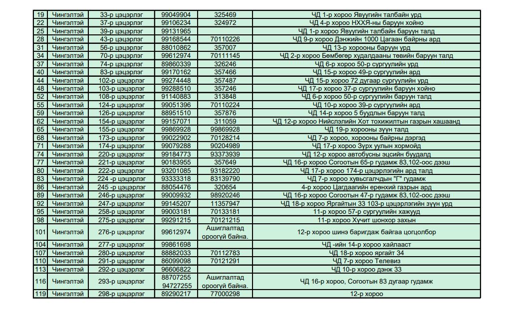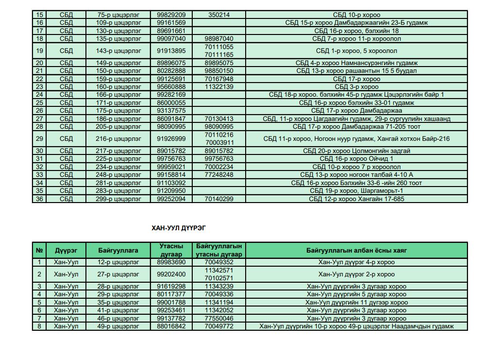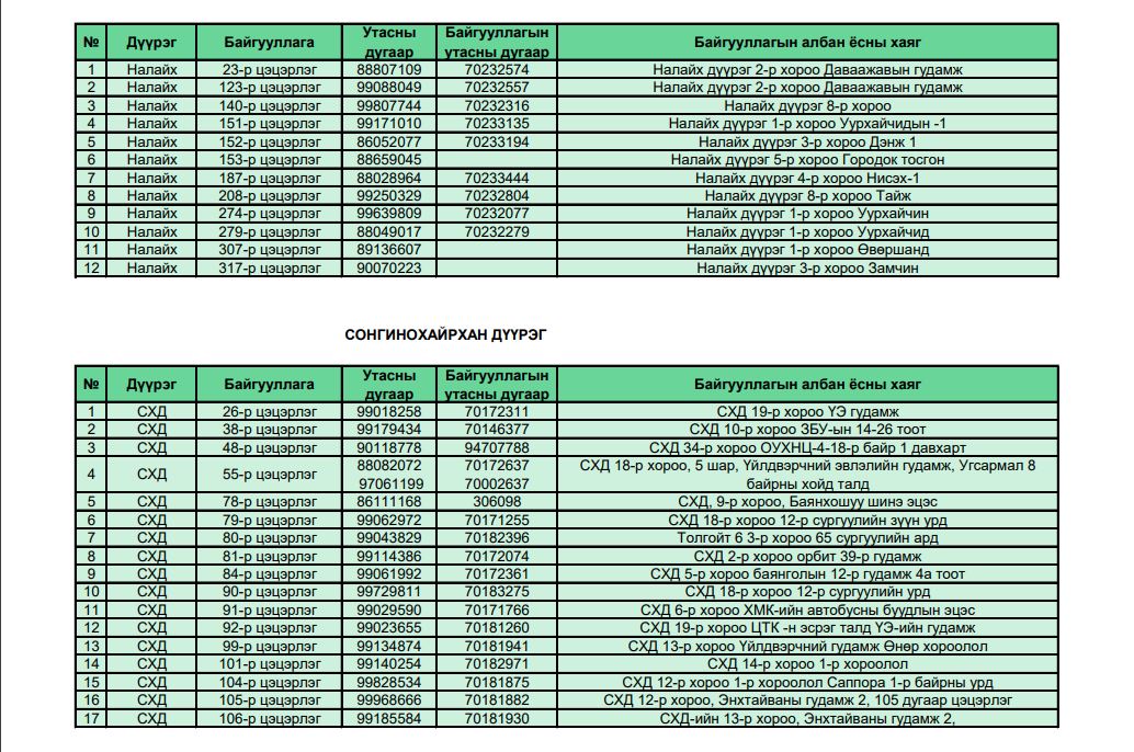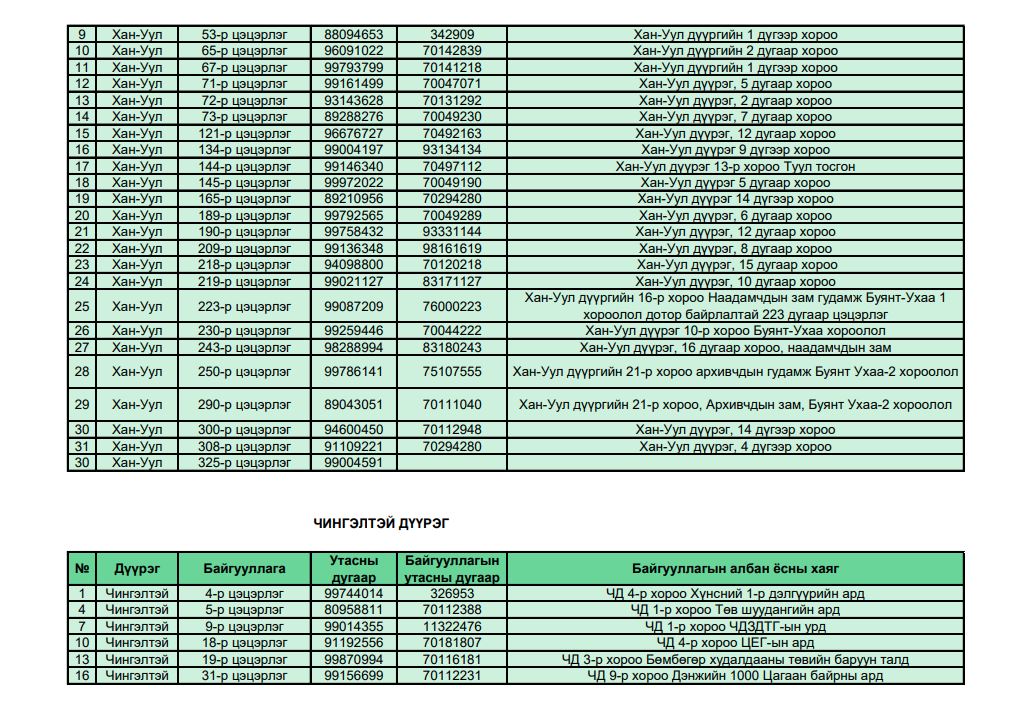Та доорх жагсаалтаас хүүхдээ харьяаллын дагуу аль цэцэрлэгт орохыг харна уу!