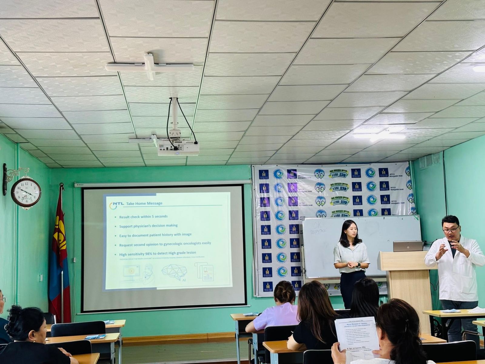 “CERVICARE AI” хиймэл оюун ухаанд суурилсан оношилгооны системийг орон нутгийн эмч нарт таниулах зорилгоор 2023.08.11-13-ны өдрүүдэд БНСУ-ын “NTL Health Care” компанийн мэргэжилтнүүдийн хамт Дархан-Уул аймгийн “Эрүүл мэндийн төв”, Сэлэнгэ аймгийн Мандал сумын нэгдсэн эмнэлэг, Төв аймгийн Заамар сумын нэгдсэн эмнэлгүүдэд хамтарсан умайн хүзүүний хорт хавдрын эрт илрүүлгийн үзлэг, оношилгоог үнэ төлбөргүй хийж, таниулах сургалтыг амжилттай зохион байгуулжээ.