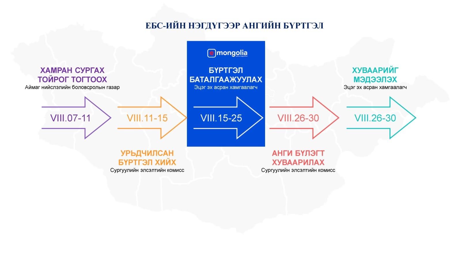 Бүртгэлийг шугам 8 дугаар сарын 20-ны өдөр хаагдана. Харин 21-25-ны өдрүүдэд эцэг эх, асран хамгаалагчдын бүртгэлтэй утасны дугаарт хуваарилагдсан талаарх мэдээлэл ирэх болно.