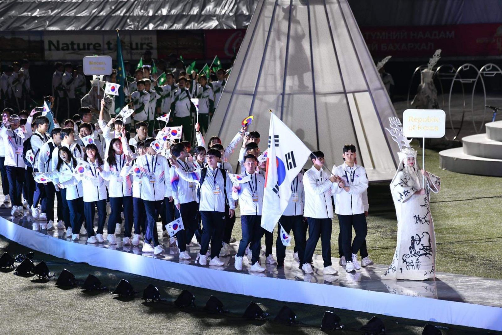 Үүний дараа тамирчид, шүүгчдийн төлөөлөл тангараг өргөсөн юм. Наадамд хамгийн олон буюу БНХАУ-аас 400 гаруй тамирчин оролцож байгаа бол Монголын 255 тамирчин оролцож байна. Манай тамирчид тус наадмын спортын бүх төрөлд өрсөлдөж байна.