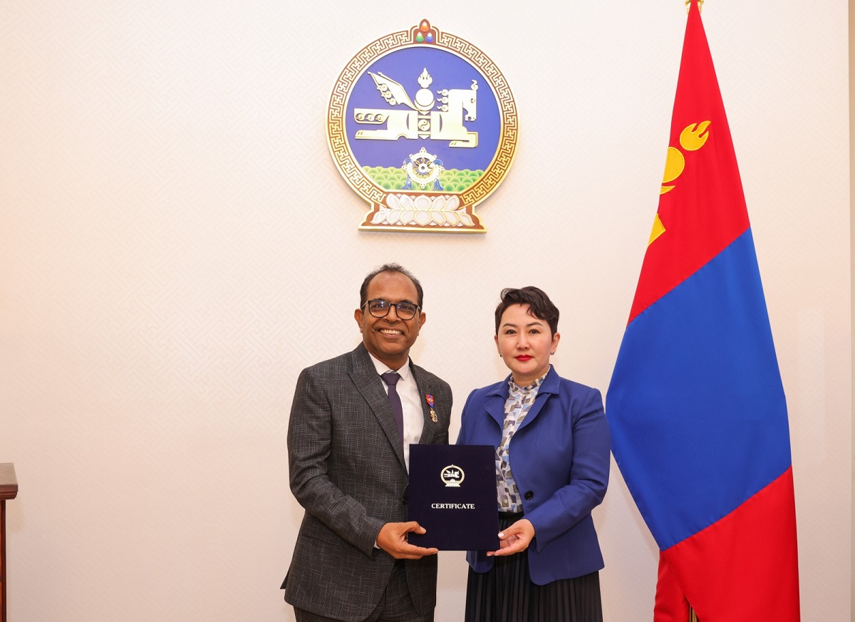 Монгол Улс НҮБ-ын Хүнс, хөдөө аж ахуйн байгууллагад гишүүнээр элссэний 50 жилийн ойг тохиолдуулан Монгол Улсын Ерөнхийлөгч У.Хүрэлсүхийн зарлигаар Монгол дахь НҮБ-ын Хүнс, хөдөө аж ахуйн байгууллагын Суурин төлөөлөгч Винод Ахужа-г “Найрамдал” медалиар шагнасныг Гадаад харилцааны сайд Б.Батцэцэг 2023 оны наймдугаар сарын 21-ний өдөр гардуулан өглөө.