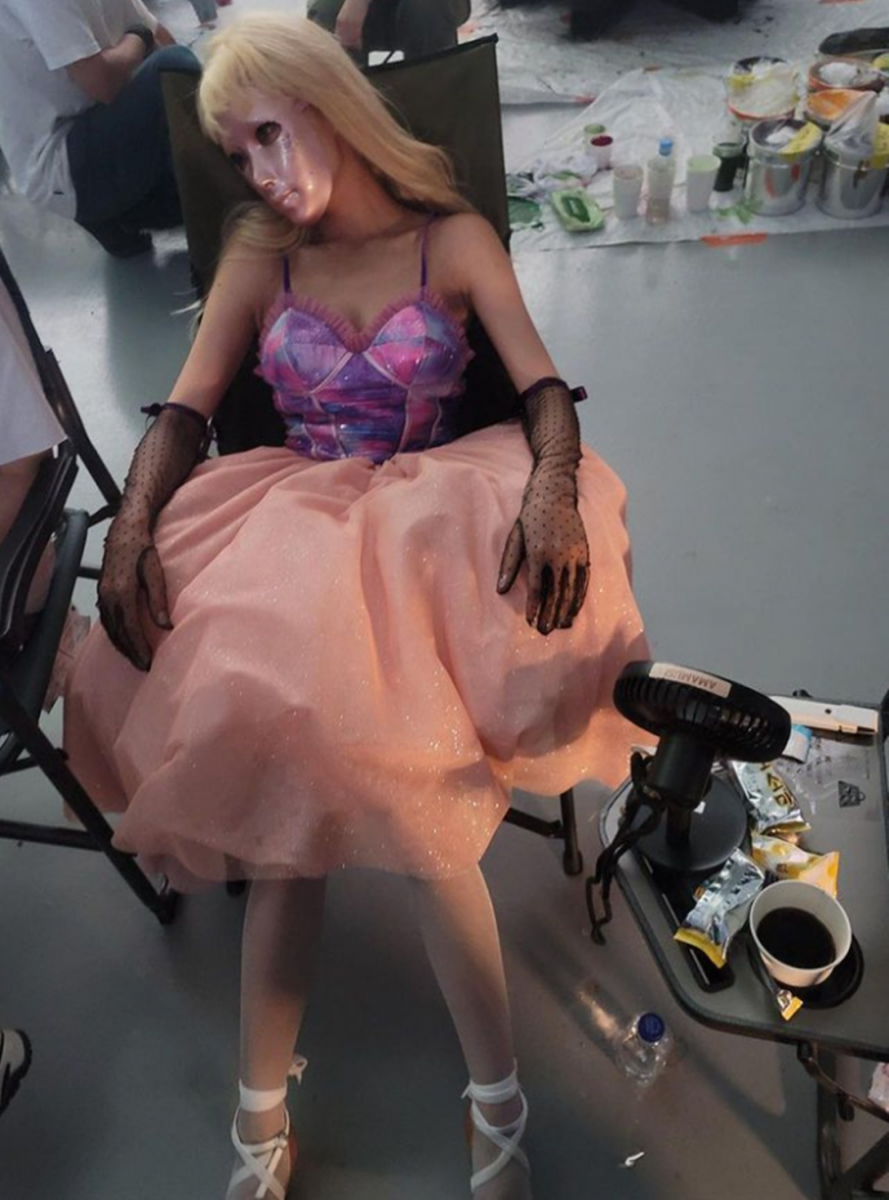 "Netflix"-ээр цацагдаж эхэлсэн даруйдаа дэлхий нийтийн анхаарлыг татаж, халуун сэдэв болоод буй "Mask Girl" киноны гол дүр болох Ким Му Мигийн дүрд нийт дөрвөн эмэгтэй тогложээ. Тэдний нэг болох загвар өмсөгч Жи Жи Ан "Mаsk Girl" кинонд тоглосон тухайгаа "Би өнгөрсөн оны нэгдүгээр сард Му Мигийн дүрд давхар жүжиглэхээр болж бүжгийн бэлтгэл хийж эхэлсэн. Кино зураг авалт наймдугаар сард эхэлсэн. Өнгөрсөн нэг жилийн хугацаанд буюу шалгалтанд тэнцсэнээсээ хойш маш олон зүйл мэдэрсэн. Сайн бүжиглэж чадахгүй байгаагаасаа болж уйлах үе ч байсан.