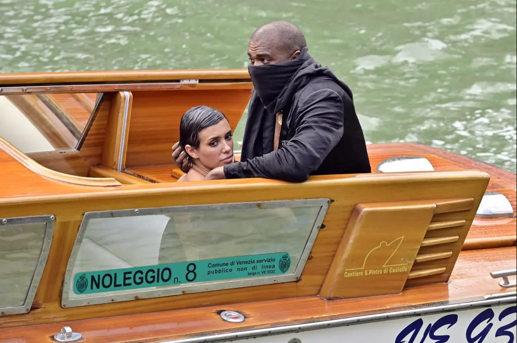 Хачин жигтэй үйлдлээрээ алдартай Канье Уэст Венецийн гудамжаар оймстойгоо алхаж яваа харагдсан бол түүний эхнэр Бианка савхин хүрэмнийхээ дотуур шилэн триконы материалаар хийгдсэн нэвт гэрэлтдэг хослол өмссөн байжээ.