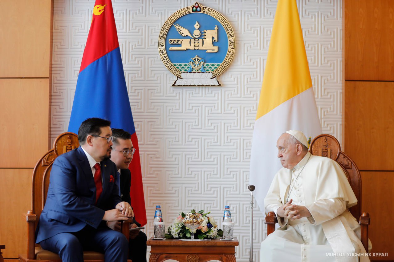 Гэгээн Ширээт Улсын Төрийн тэргүүн Пап Францис Монгол Улсын төр засаг, түүний ард түмэн хүндэтгэлтэй, халуун дотноор бидний айлчлалыг хүлээн авч байгаад туйлын баяртай байгаагаа илэрхийлээд агуу түүхтэй ард түмэн язгуур уламжлалаа авч үлдэн залуу үедээ залгамжилж байгаа нь Монголчуудын чин зориг, чин сэтгэлийн агуу их уламжлал бөгөөд түүхэн, онцгой явдал юм хэмээв.