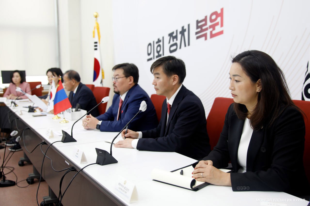 Үндэсний Ассамблей дахь Ард Түмний Хүч Намын бүлгийн дарга Юн Жэ Уг Улсын Их Хурлаас парламентын ардчиллыг бэхжүүлэхээр хэрэгжүүлж буй бодлого, мөн Монгол Улсын Үндсэн хуульд оруулсан өөрчлөлтийн эрх зүй зохицуулалтыг сонирхон асууж байв.