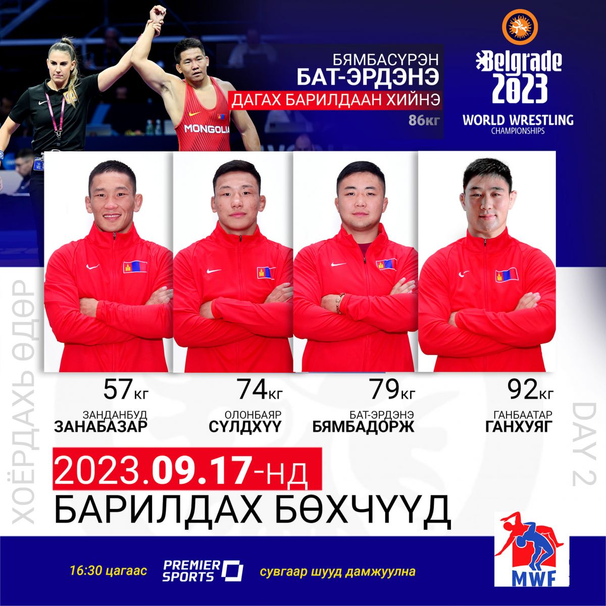 Өнөөдөр эрэгтэй 57, 74, 79, 92 кг-ын жингийн барилдаанууд эхэлнэ.