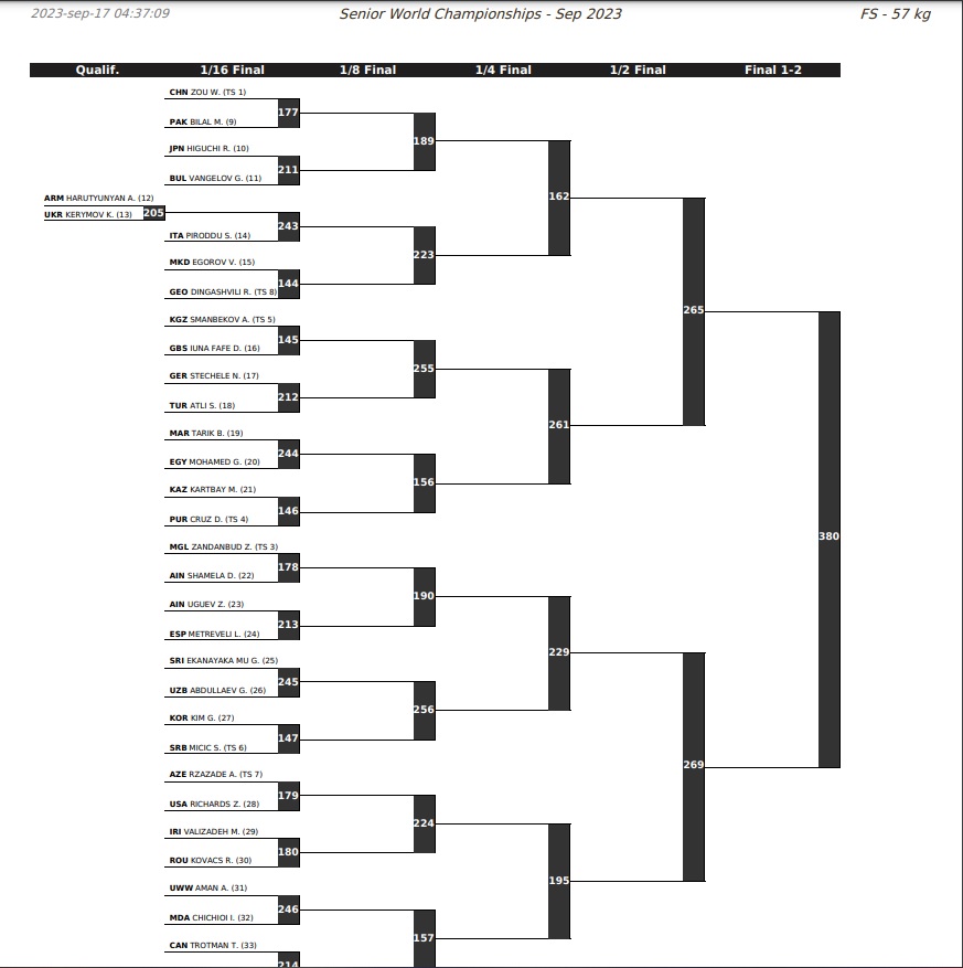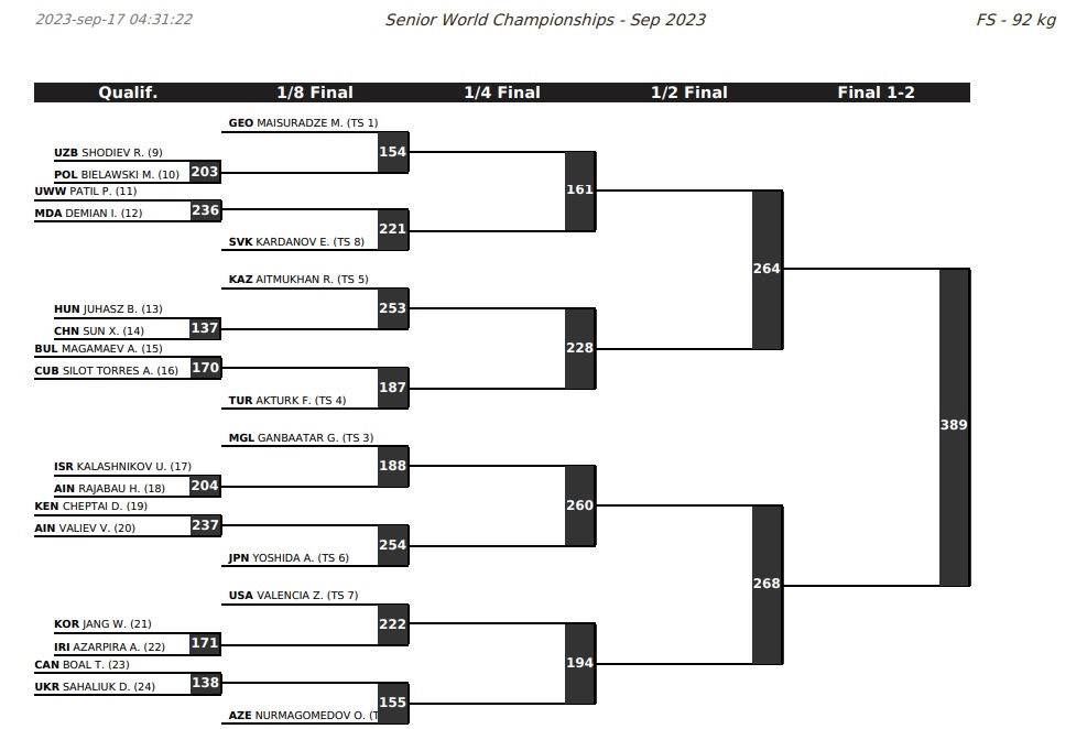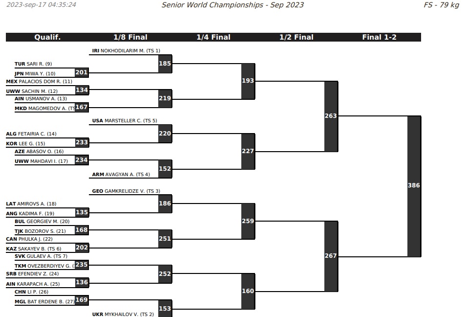 79 кг-ын жинд ОУХМ Бат-Эрдэнийн Бямбадорж, БНХАУ-ын Ли Пейлонтой барилдана. Ялахад Украины бөхтэй учрах болно.