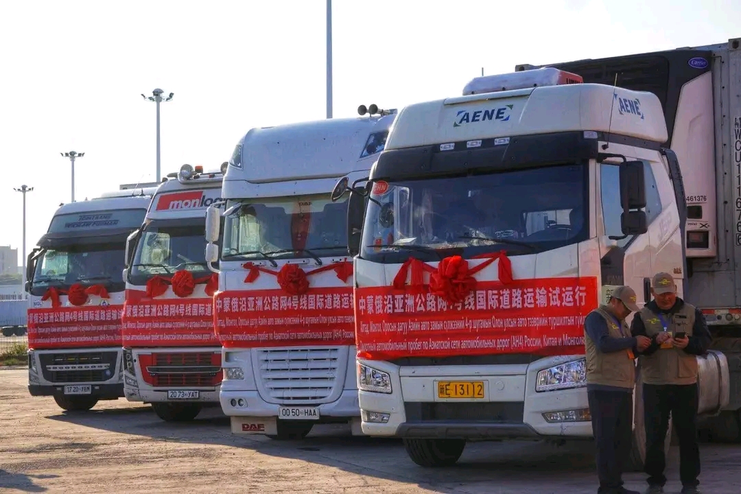 Азийн авто замын сүлжээний АН-4 чиглэлийн авто замаар гурван улсын туршилтын тээвэр өнөөдөр /2023.09.22/ эхэллээ.