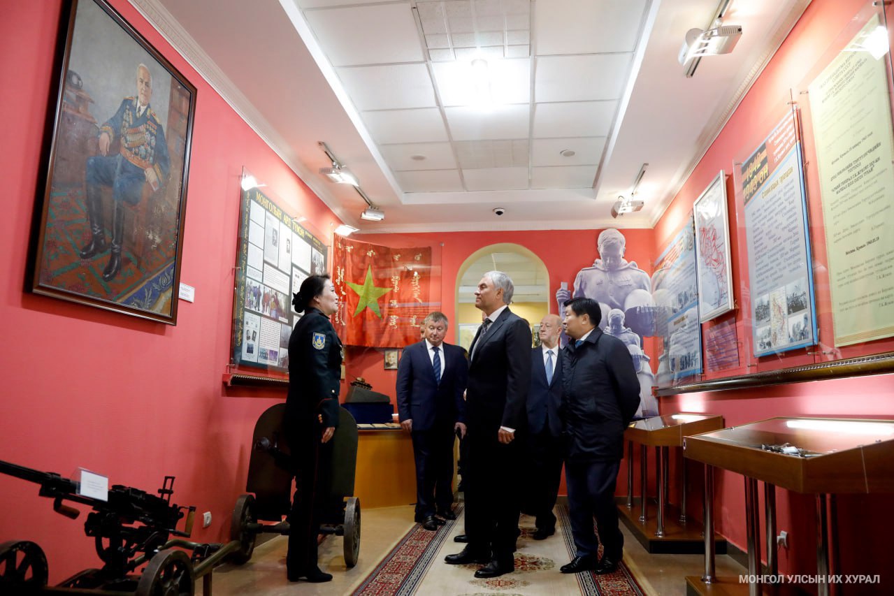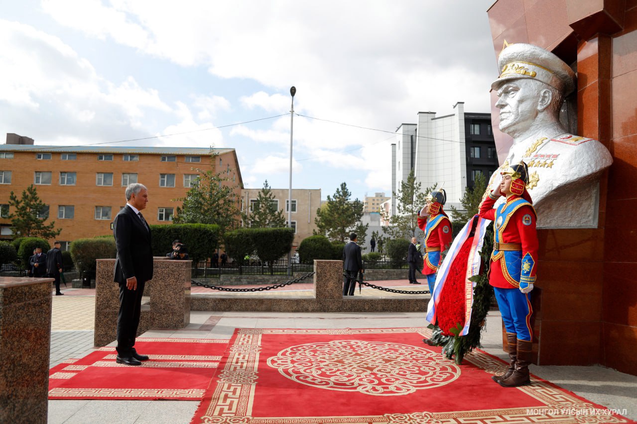 Манай улсад албан ёсны айлчлал хийж буй ОХУ-ын Холбооны Хурлын Төрийн Думын дарга, Эрхэмсэг ноён Вячеслав Викторович Володин, УИХ-ын гишүүн, Аюулгүй байдал, гадаад бодлогын байнгын хорооны дарга Б.Энх-Амгалан болон бусад төлөөлөгчдийн хамт БНМАУ-ын баатар, ЗХУ-ын дөрвөн удаагийн баатар, Маршал Георгий Константинович Жуковын хөшөөнд цэцэг өргөж, хүндэтгэл үзүүлэв.