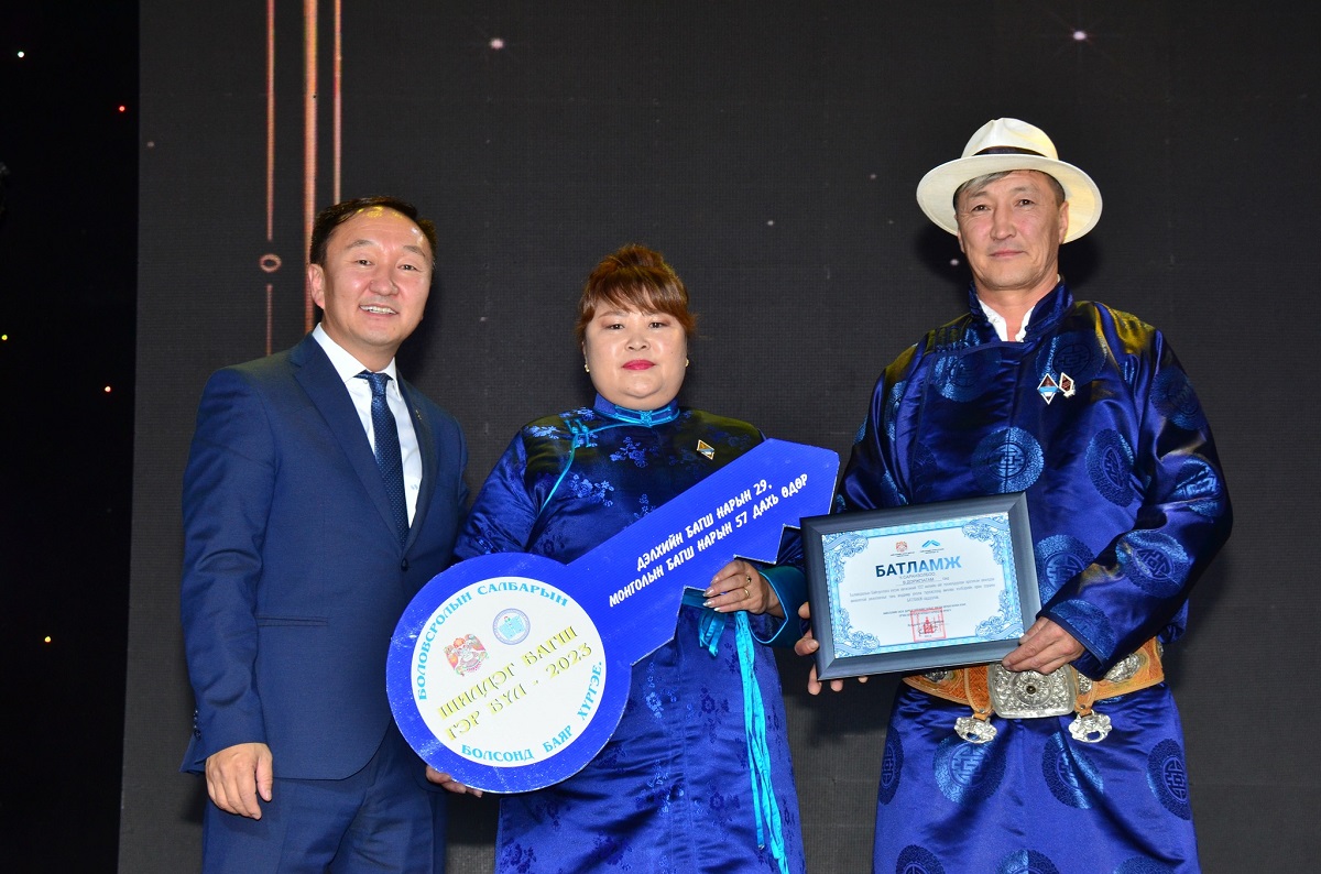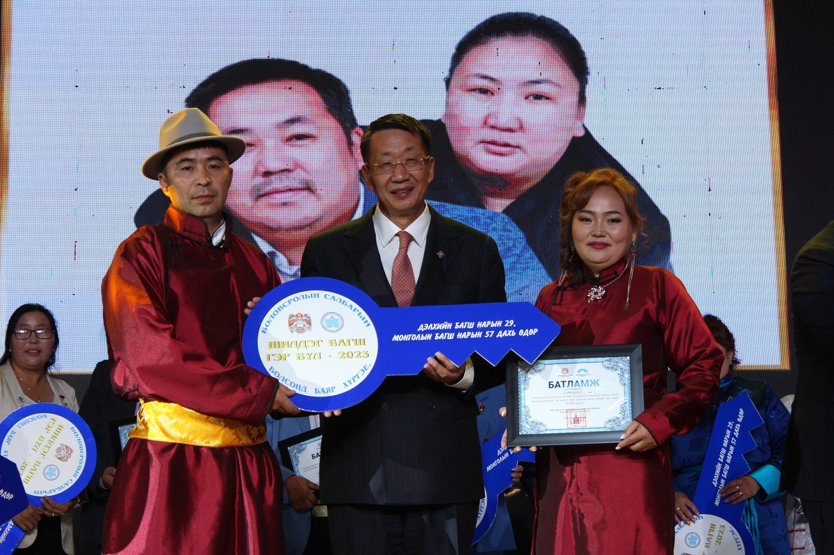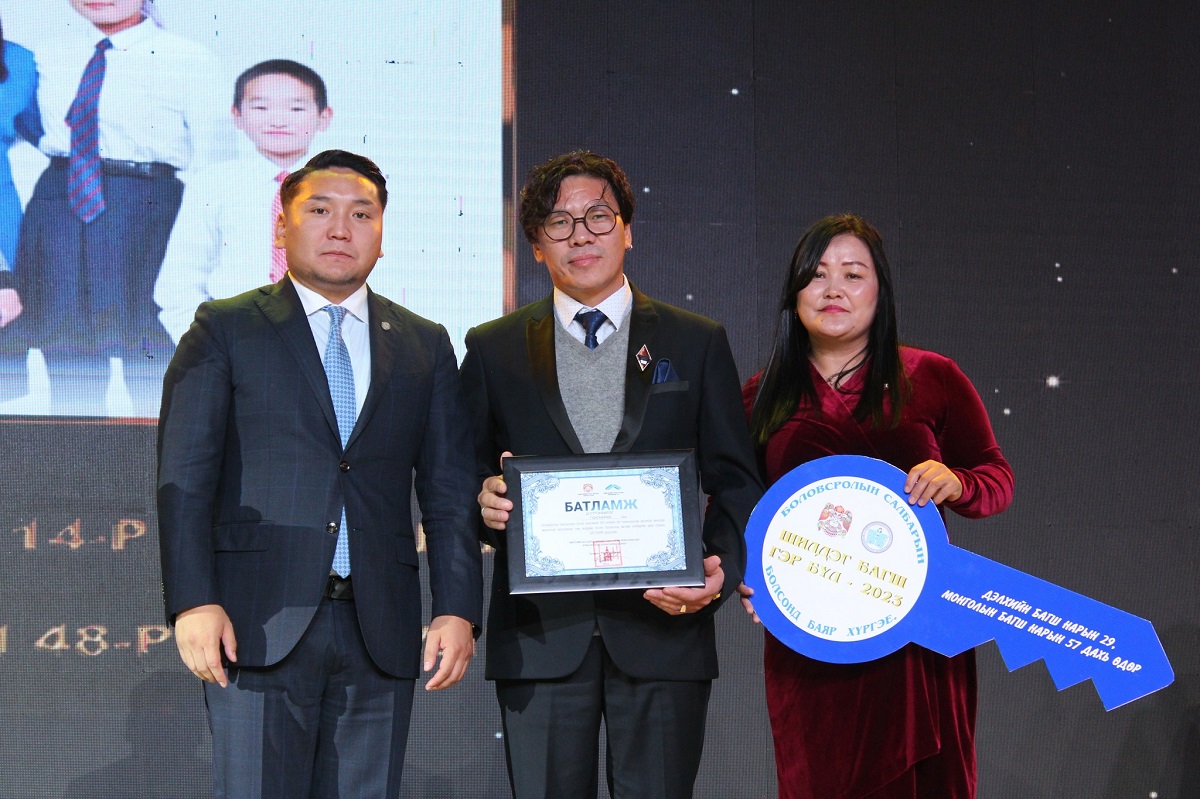 Мөн энэ арга хэмжээний үеэр боловсролын салбарт гэр бүлээрээ хүчин зүтгэж байгаа есөн гэр бүлд түрээслээд өмчлөх нөхцөлтэй орон сууцны батламжийг гардууллаа.