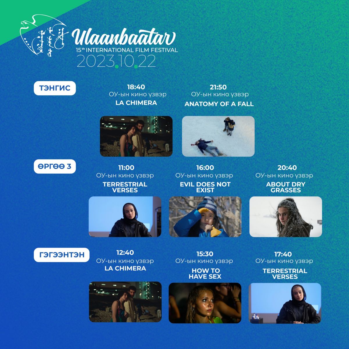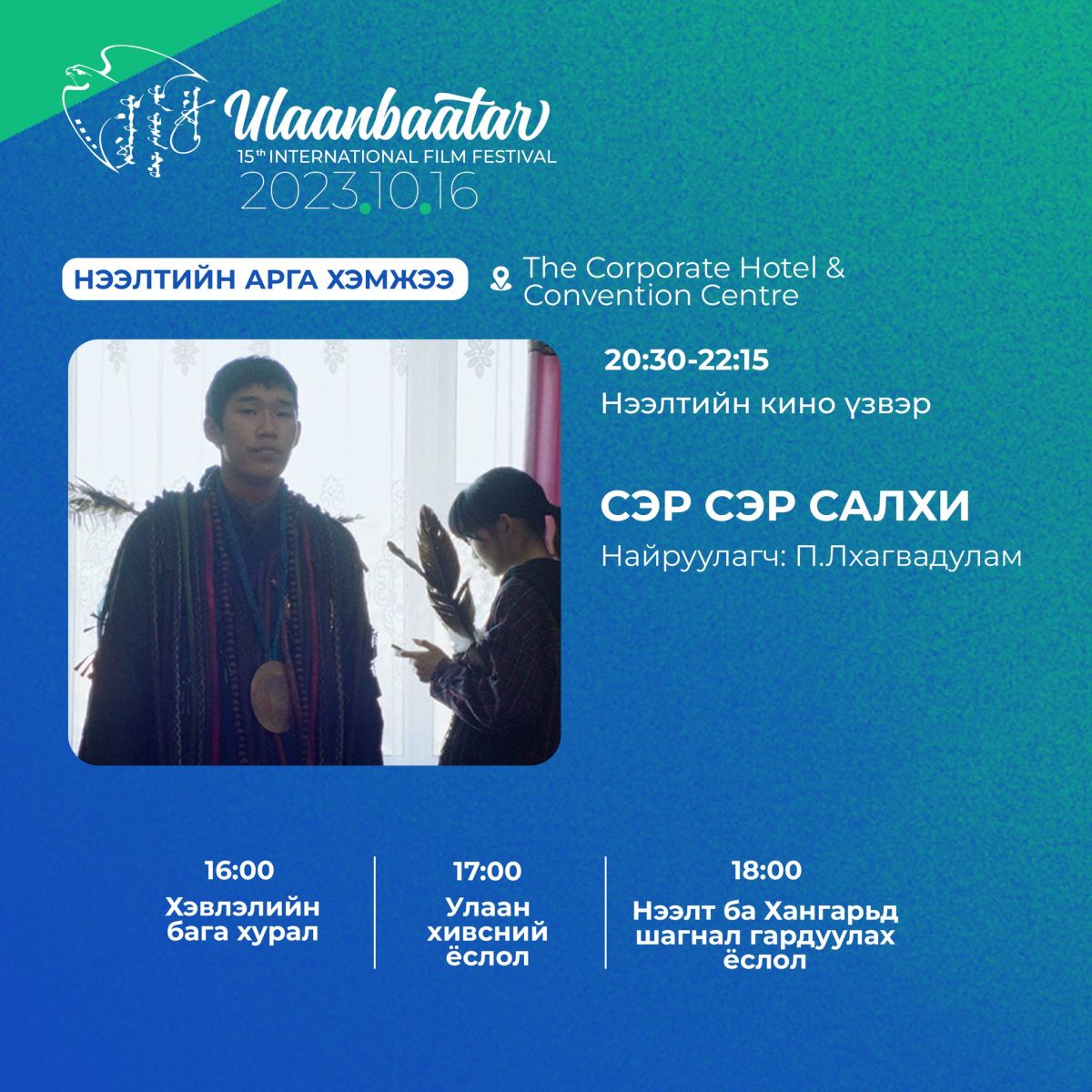 Кино урлагт хайртай хэн бүхний хүсэн хүлээдэг "УЛААНБААТАР" олон улсын кино наадам өнөөдөр буюу 2023 оны аравдугаар сарын 16-ний өдөр албан ёсоор эхэллээ. 15 дахь удаагаа зохион байгуулагдаж буй энэхүү наадам энэ сарын 16-22-ний өдрүүдэд зохион байгуулагдна.