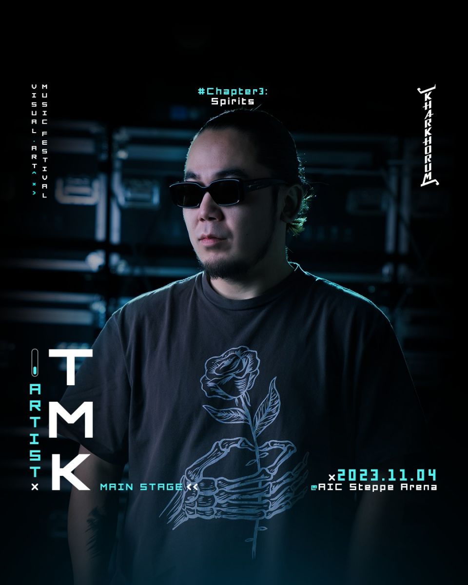 Монголын электрон хөгжмийн хүнд жингийн тоглогчдын нэг болох DJ TMk-г мэдэхгүй хүн бараг байхгүй биз ээ. Тэрээр сүүлийн жилүүдэд өөрийн нээсэн Iso Room болон ISO лэйблээр дамжуулан тоолж баршгүй олон улсын уран бүтээлчдийг урин авчирч Монголын электрон хөгжимд дурлагсдыг баярлуулахаас гадна өөрийн карьерыг зогсолтгүй амжилттай авч явсаар байна. Тэрээр саяхан болсон INTRO фестиваль дээр өөрийн анхны Boiler Room тоглолтоо хийн дэлхий дахинаа өөрийн сэтийг хүргээд байгаа билээ. Та бүхэн TMk -н хүчирхэг Breakbeat, Electronica болон Techno сэтийг Kharkhorum фестивалийн Main stage-н 2дахь өдрөөс олж сонсоорой.