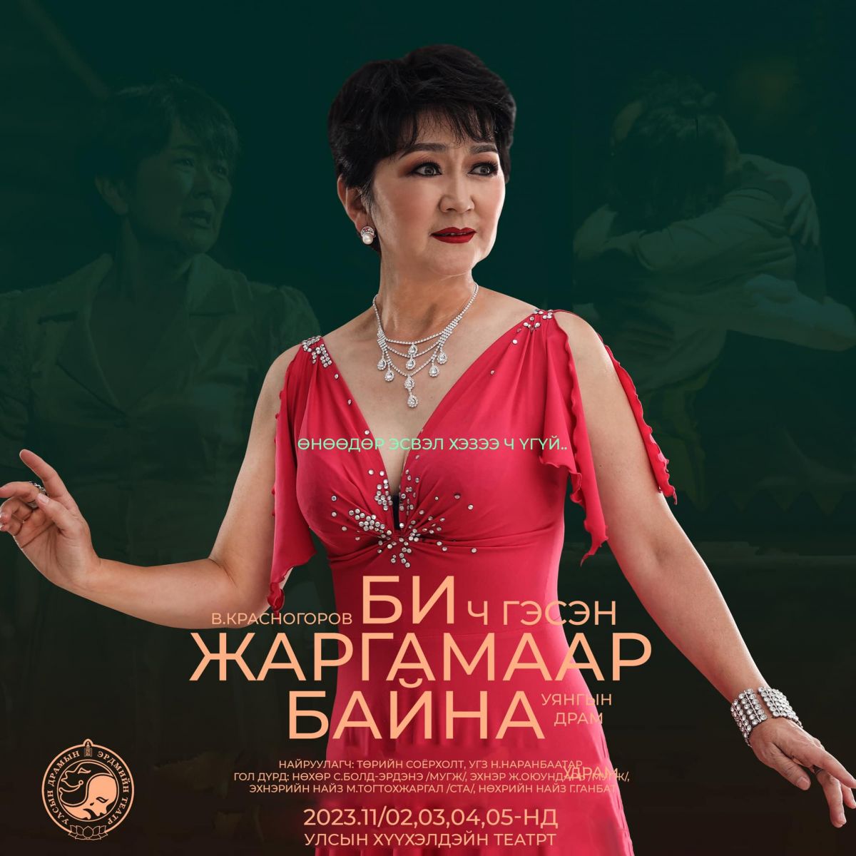 Оросын нэрт зохиолч В.Красногоровын бүтээл "Би ч гэсэн жаргамаар байна" уянгын драмын жүжиг ирэх арваннэгдүгээр сарын 2-5-ний өдрүүдэд "Хүүхэлдэйн театр"-т тоглогдох гэж байна. Тус жүжиг нь Улсын драмын эрдмийн театрын тайзнаа 2010 онд нээлтээ хийж, 2018 онд дахин тоглогдож, 2022 онд мөн тайзнаа тавигдсан билээ.