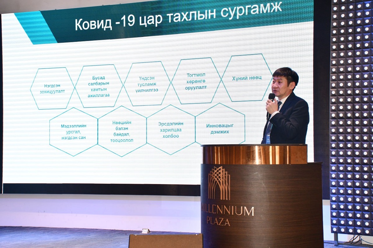 Хоёр өдөр үргэлжлэх тус хурлын үндсэн илтгэл болох “Цар тахлын дараах үеийн тогтвортой байдлыг хангах, цаашид авч хэрэгжүүлэх арга хэмжээ, бодлого, чиглэл” сэдвээр ЭМЯ-ны Нийтийн эрүүл мэндийн газрын дарга Д.Баярболд илтгэл тавьж танилцуулсан бол “Шинэ болон сэргэж буй халдварын бэлэн байдал, тэсвэрлэх чадвар” сэдвээр ДЭМБ-ын НДББ-ийн мэргэжилтэн Виема Биакула мэдээлэл өгч, хэлэлцүүлэг өрнүүллээ.