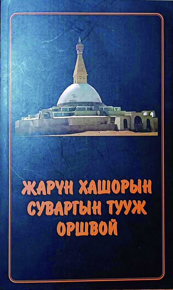 “Жарүн Хашорын суваргын тууж оршвой”. УБ. 2023. 35 дахь тал Мөн номын 35-36 дахь тал тул судрын агуулгаас зарим нэг зүйлийг эрхэм хүндэт уншигч танд ишлэн сонирхуулахад огтхон ч илүүдэхгүй буй заа хэмээн сэтгэв. “Жарүн Хашор” хэмээн алдаршсанаар суварганд эргэл мөргөл, тахил барьсны ач тус номлосон дөтгөөр бүлэгт гэхэд “Хэн алгаа хамтатган мөргөгч бүгд үнэхээр ариун мөрд орох болъюу. Түүнд мөргөл хэн үйлдсэн бүгд мянган хүрд орчуулагч Загарварьди хаан болон төрьюү. Хэн эргэн үйлдэгч бүгд дээд төр­лийн долоон эрдэм лүгээ төгсөх болъюу” 7 хэмээжээ. Энэ мэтээр эргэл мөргөл, тахил барьсны 79 ач тусыг эгнүүлэн жагсааж дурдсан ажгуу. “Жарүн Хашор” хэмээх их суваргыг тахин, насны цаг үед таван цөвүүн цаг болох цагт эвдэрснийг сэлбэх үйлд, билиг хийгээд цаг мөч үзүүлсэн” тавдугаар бүлэгт цөвүүн цаг ирж буйг ямар ямар шинж тэмдгээр мэдэж мэдэрч болохыг номын их багштан Бадамсамбава Ширээ сахигч их хаанд нэгд нэгэнгүй айлтган өгүүлж анхааруулан сэрэмжлүүлжээ.