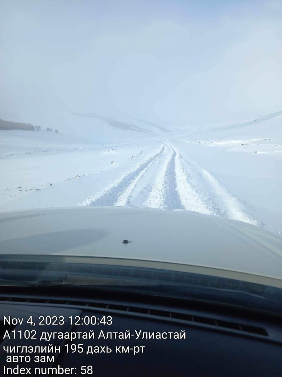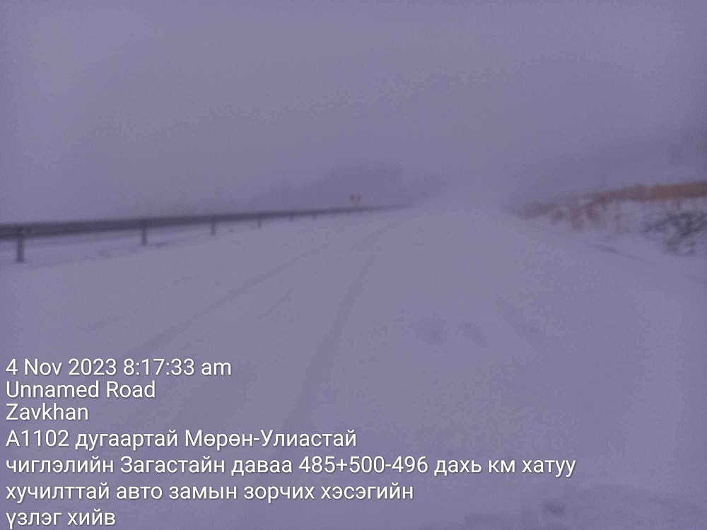 2. Олон улс, улсын чанартай А0603 дугаартай Цэцэрлэг-Тосонцэнгэл-Нөмрөг чиглэлийн авто замын Солонготын даваа, А1102 дугаартай Мөрөн-Улиастай чиглэлийн авто замын Загастайн даваа, А1103 дугаартай Улиастай-Алтай чиглэлийн авто замын Ганцын даваанд 2023 оны 11-р сарын 2-ны өдрөөс орсон цас хүчтэй шуурганы улмаас зорчих хэсэг цасанд дарагдсан байдалтай. Зам хариуцагч Завхан АЗЗА ТӨХК- ийн шуурхай ажлын хэсгүүд ажиллаж байна.