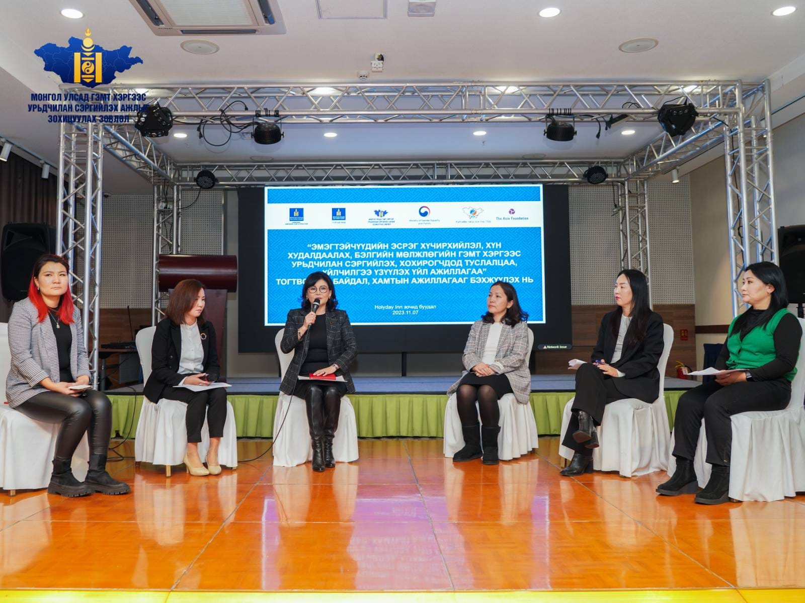 Хөдөлмөр, нийгмийн хамгааллын яам, БНСУ-ын Жендэрийн тэгш эрх, гэр бүлийн яамтай хамтран “Эмэгтэйчүүдийн эсрэг хүчирхийллээс урьдчилан сэргийлэх, бэлгийн мөлжлөгт өртсөн хохирогчид туслалцаа үзүүлэх” төслийг 2018 оноос 5 жилийн хугацаатай амжилттай хэрэгжүүллээ.