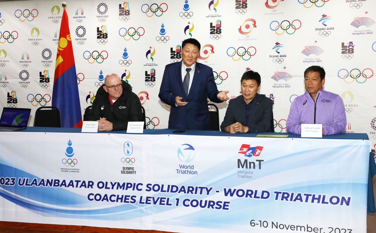 Олон улсын олимпын хорооны Олимпын эв санааны нэгдлийн сан, Монголын үндэсний олимпын хороо, Дэлхийн триатлоны холбоо хамтран Триатлоны дасгалжуулагчдын олон улсын сургалтыг арваннэгдүгээр сарын 6-10-нд Улаанбаатар хотноо зохион байгуулж байна.