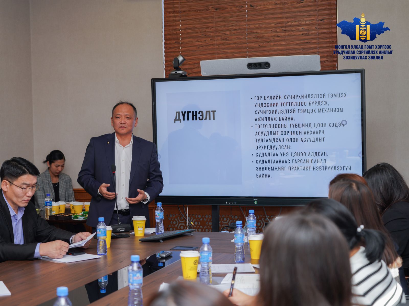 Хуралдаанаар Гэр бүлийн хүчирхийлэлтэй тэмцэх тухай хууль болон түүнийг дагаж гарсан журмын хэрэгжилтэд хийсэн үр дагаврын үнэлгээний тайлан, гэр бүлийн хүчирхийллийн чиглэлээр хийгдсэн судалгааны ажлуудыг нэгтгэн боловсруулсан “Судлагдсан байдлын тойм” судалгааны үр дүнг хэлэлцлээ.