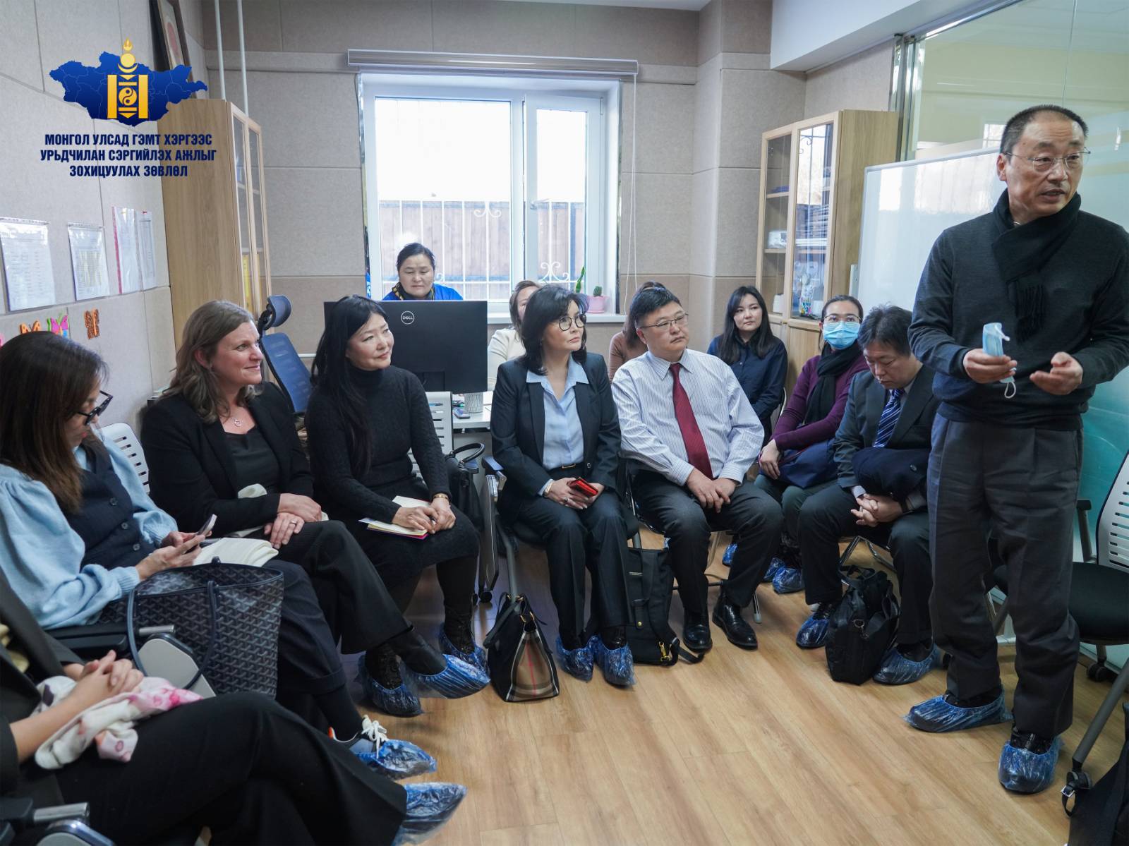 Хууль зүй, дотоод хэргийн дэд сайд Б.Солонгоо, ХЗДХЯ-ны ТЗУГ-ын дарга П.Хадбаатар, тус Ажлын албаны дарга Л.Нямгэрэл, АХБ-ны Монгол Улсыг хариуцсан гүйцэтгэх захирал Жастин Диокно-Сикат, АХБ-ны Япон Улсыг хариуцсан гүйцэтгэх захирал Шигео Шимизү, АХБ-ны Зүүн Азийн газрын ерөнхий захирал Терека Ко, АХБ-ны Монгол Улс дахь Суурин төлөөлөгч Шэннон Коулин, “Хүүхэд, эмэгтэйчүүдийн эсрэг гэр бүлийн хүчирхийлэлтэй тэмцэх” төслийн удирдагч Г.Саранзаяа болон бусад холбогдох албаны хүмүүс СХД-ийн түр хамгаалах байрны үйл ажиллагаатай танилцлаа.