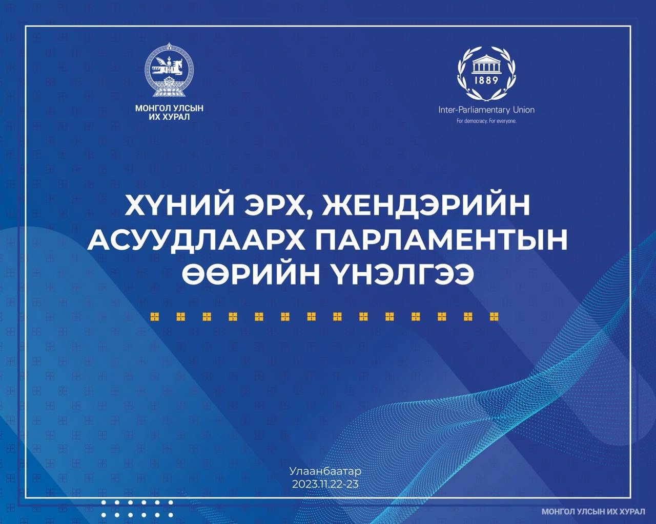 Монгол Улсын Их Хурал нь Олон Улсын Парламентын Холбооноос (ОУПХ) боловсруулсан аргачлалын дагуу хүний эрх болон жендэрийн асуудлаар хоёр төрлийн үнэлгээ хийх үйл ажиллагааг 2023 оны 11 дүгээр сарын 22, 23-ны өдрүүдэд Төрийн ордонд зохион байгуулна. Өөрийн үнэлгээ нь ОУПХ-ны “Парламент ба Хүний эрх”, “Парламентын жендэрийн мэдрэмжтэй байдал” өөрийн үнэлгээний аргачлалд үндэслэн тодорхойлсон асуултуудыг хамрах бөгөөд нэгдсэн болон салбар хэлэлцүүлэг хэлбэрээр явагдана.
